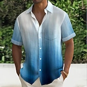 More information about Men's Gradient Geometric Pattern Button Up Shirt Printed Shirts Short Sleeve Hawaiian Resort Outdoor Business / Ceremony / Wedding Summer Turndown Print Button-Down Blue