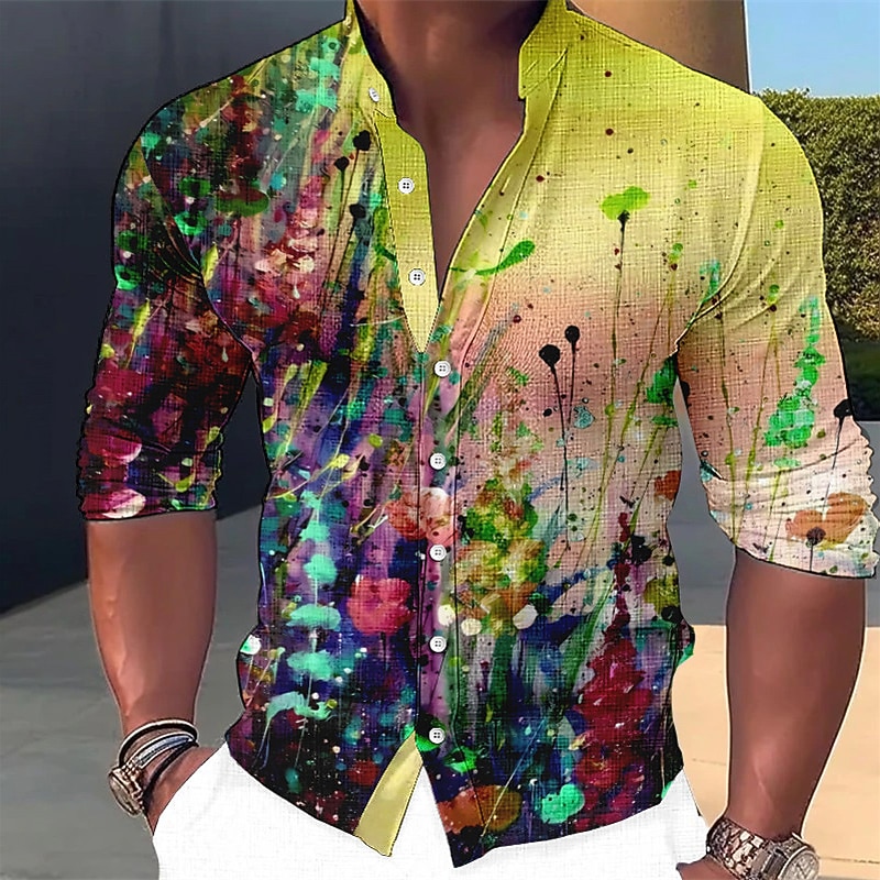 Highlights [Fabric] : This shirt is crafted from a lightweight and breathable polyester fabric, ensuring comfort and ease of movement throughout the day. The smooth texture adds a touch of luxury while maintaining durability for everyday wear. [Fit Type] : Designed with a regular fit, this shirt offers a contemporary silhouette that suits a variety of body types. It allows for easy layering without compromising on style, making it a versatile addition to any wardrobe. [Design Details] : Featuring a stand collar and a vibrant floral print, this shirt is perfect for those who appreciate bold and artistic designs. The long sleeves can be rolled up for a more casual look, complemented by a classic button-down front that enhances its fashionable appeal. [Occasions] : Ideal for daily wear, casual outings, or outdoor events, this shirt combines style and comfort effortlessly. Whether you're heading to a creative professional setting or enjoying a relaxed day out, this piece will ensure you stand out with its one-of-a-kind design. [Size Range] : Available in sizes S, M, L, XL, 2XL, and 3XL, this shirt caters to a wide range of preferences and body types. It's designed for adult men who value both fashion and functionality. Perfect for everyday use. excellent materials and excellent craftsmanship ensure long-lasting durability.