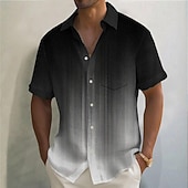 More information about Men's Gradient Geometric Pattern Button Up Shirt Printed Shirts Short Sleeve Hawaiian Resort Outdoor Business / Ceremony / Wedding Summer Turndown Print Button-Down Black