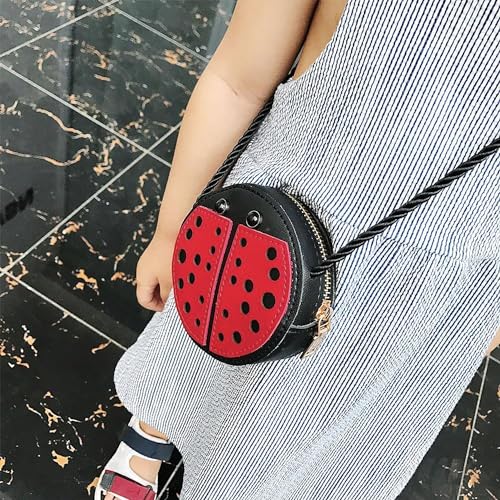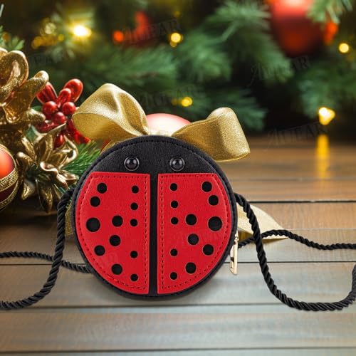 trending ! AUEAR, Cute Ladybug Purse Mini Pu Leather Cross Body Bag Wallet Pouch for Women and Female, Black Red