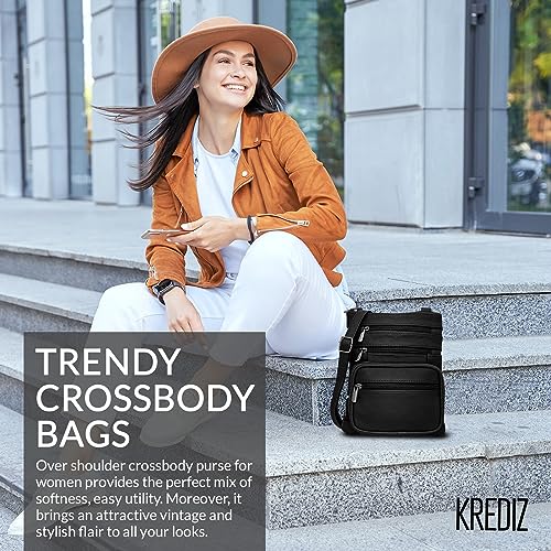 trending ! Krediz Leather Crossbody purses for Women - travel bag with 4 Zippers, velvety & sturdy Purses for Women Trendy