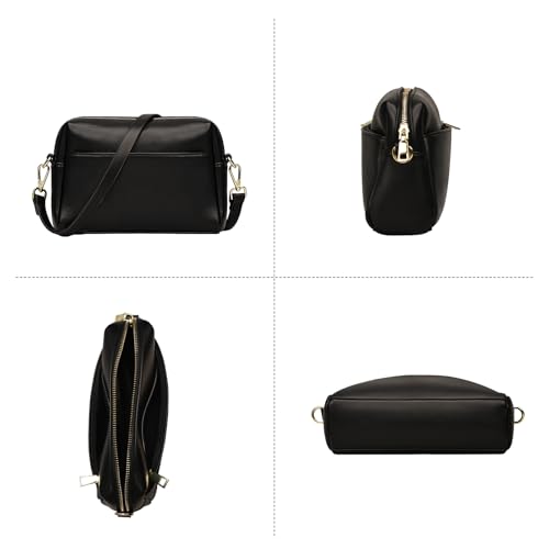 Triple Zip Crossbody Bag for Women - Vegan Leather Camera Purse with Detachable Strap & Organizer Pockets for Travel