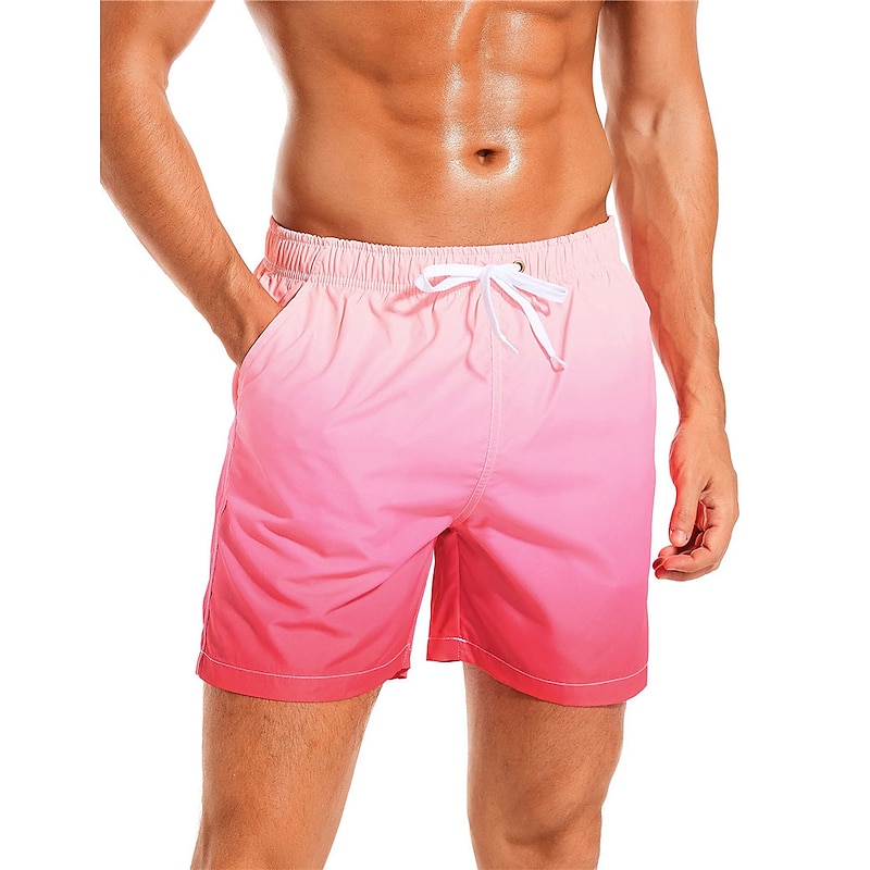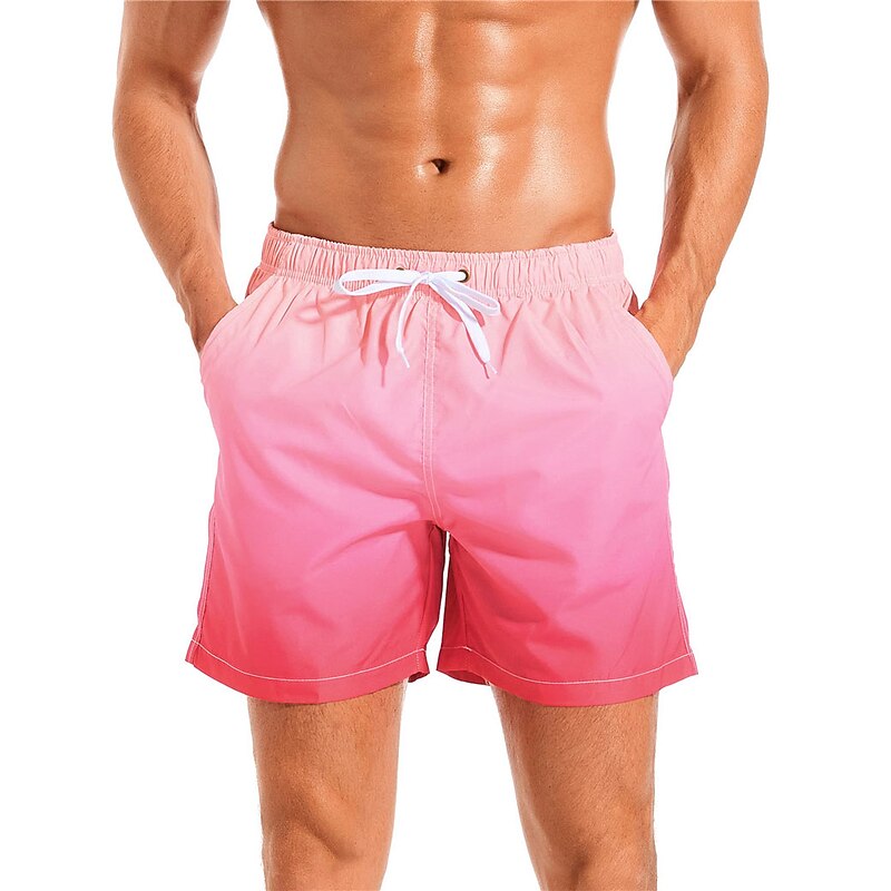 Men's Board Shorts Swim Shorts Swim Trunks Drawstring with Mesh lining Elastic Waist Gradient rapid Dry Short Casual Daily Holiday Hawaiian Boho Black Pink Micro-elastic
