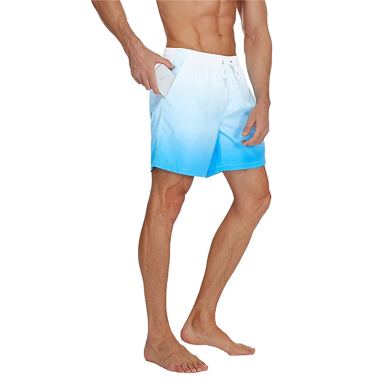 Highlights [Fabric] : These men's board shorts are crafted from high-quality polyester fabric, ensuring a lightweight and quick-drying experience. The material offers micro-elasticity, providing a comfortable fit that allows for ease of movement during various activities. [Fit] : The shorts feature a regular fit that is ideal for both relaxed lounging by the poolside and active beach days. The mid-waist design, combined with the elasticated waistband and drawstring closure, ensures a secure and adjustable fit for added comfort. [Design Highlights] : Showcasing a stylish gradient pattern, these swim shorts transition beautifully from white to deep turquoise. The design includes functional elements such as convenient side pockets for easy storage and a mesh lining for added support and comfort. The drawstring and elastic waist add to the customizable fit, making them both practical and fashionable. [Occasions] : These versatile swim shorts are perfect for summer holidays, daily casual wear, and beach outings. Whether you're heading for a swim, participating in water sports, or enjoying a casual day out, these shorts offer style and functionality suitable for a variety of occasions. [Sizes] : Available in a wide range of sizes including S, M, L, XL, XXL, 3XL, and 4XL, these shorts are designed to accommodate various body types, ensuring the perfect fit for every man. Perfect for everyday use. excellent materials and excellent craftsmanship ensure long-lasting durability.