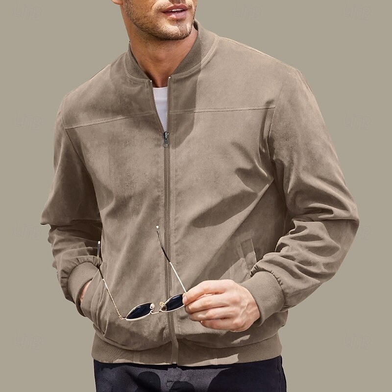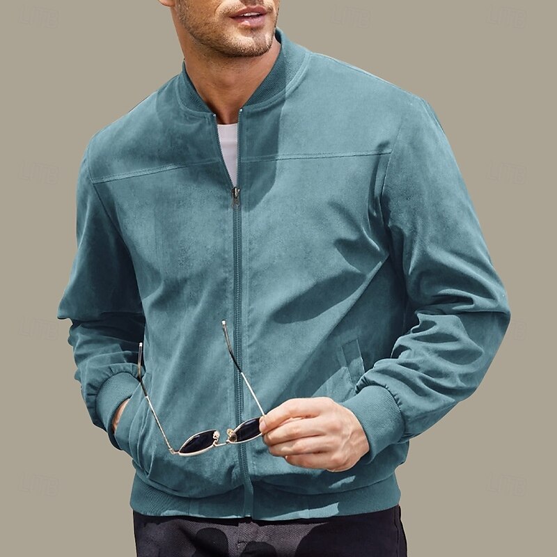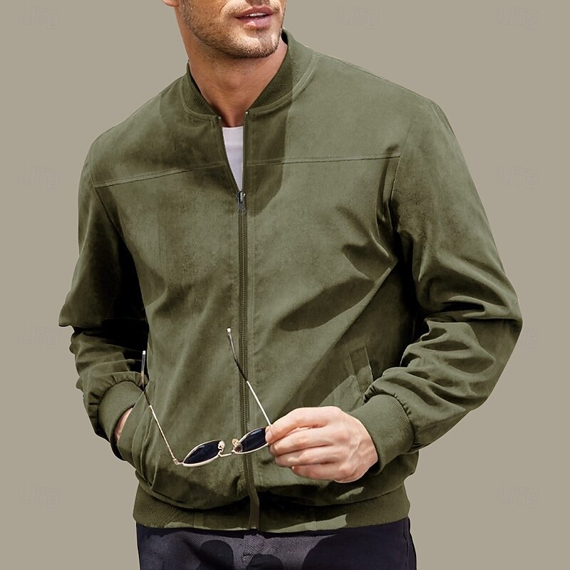 Highlights [Fabric] : Crafted from a 50% cotton blend, this men's jacket offers a soft, suede-like texture that combines comfort with a touch of luxury. Its lightweight design makes it perfect for the transitioning seasons of fall and winter, ensuring warmth without compromising on style. [Fit] : The jacket features a regular fit with a zip-up front that complements its classic stand collar. Ribbed cuffs and hem create a tailored silhouette that enhances the jacketβs overall sleek and modern appearance. [Design Highlights] : This contemporary bomber jacket comes with practical side pockets, ensuring convenience for daily essentials. The minimalist, plain pattern offers a versatile canvas, available in timeless colors such as Black, Dark Blue, Army Green, Brown, and Light Blue. [Occasions] : Suitable for a variety of settings, from casual outings and daily wear to vacation and semi-formal occasions, this versatile jacket adapts seamlessly, enhancing your look with its understated elegance. [Size Range] : Available in a wide range of sizes, from S to 3XL, accommodating various body types and preferences, ensuring a comfortable fit for everyone. Perfect for everyday use. excellent materials and excellent craftsmanship ensure long-lasting durability.