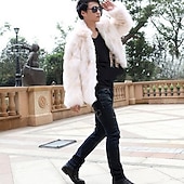 More information about Men's Winter Jacket Winter Coat Jacket Fur Coat Street Daily Thermal comfortable Warm Fur Trim Fall Winter Solid Color Casual Military Style Turndown Regular Faux Fur Regular Fit Black White Coffee Jacket