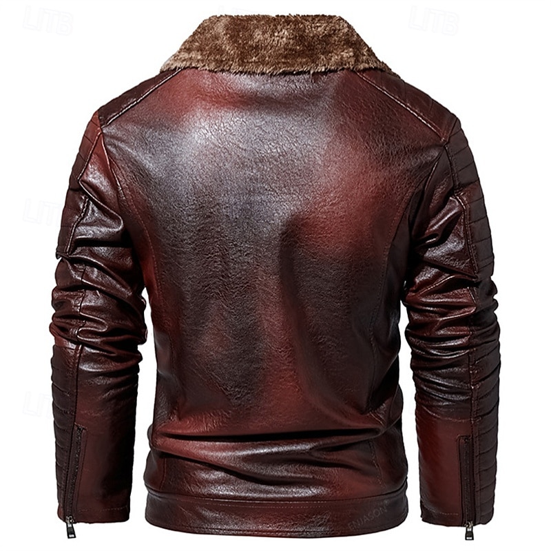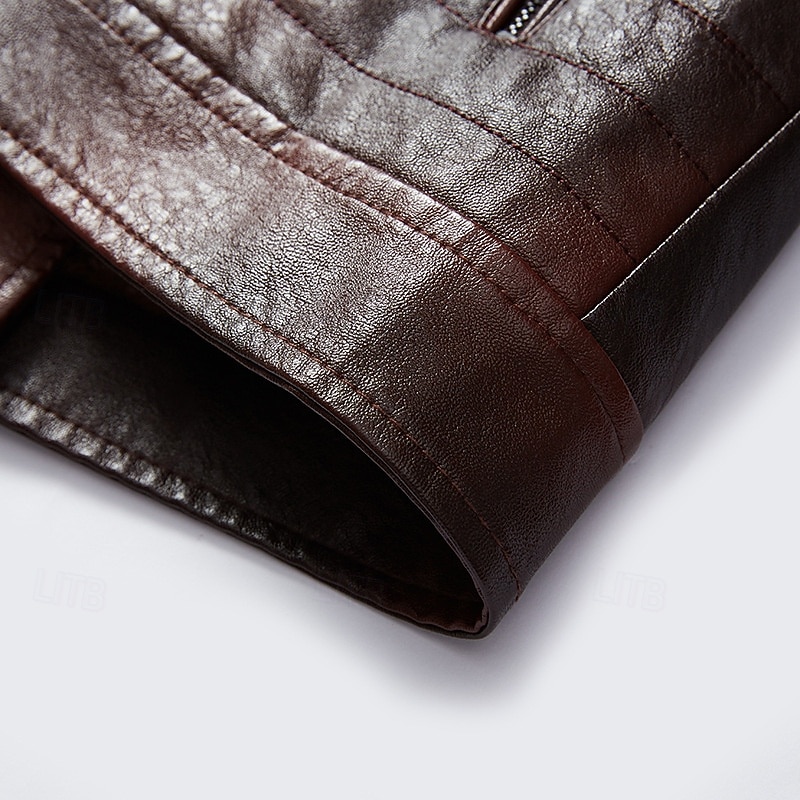 More information about Men's Faux Leather Jacket Fleece Jacket Biker Jacket Motorcycle Jacket Daily Vacation Windproof heated Pocket Fall & Winter Plain Fashion iconic Lapel Regular Black Red Brown Coffee Jacket