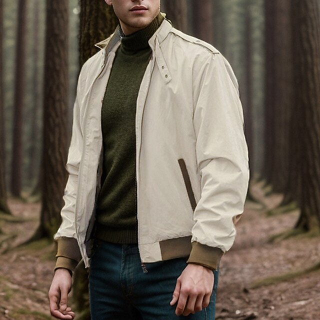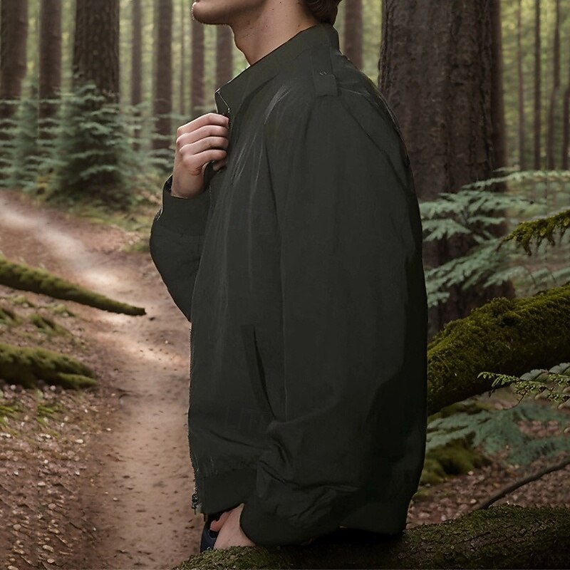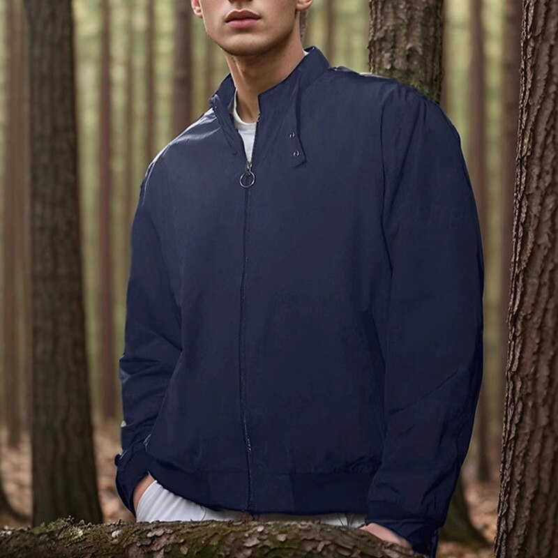 More information about Men's Lightweight Jacket Cargo Jacket Casual Jacket Vacation Daily Pocket Spring Fall Color Block Fashion iconic Stand Collar Regular Black Navy Blue Khaki Jacket