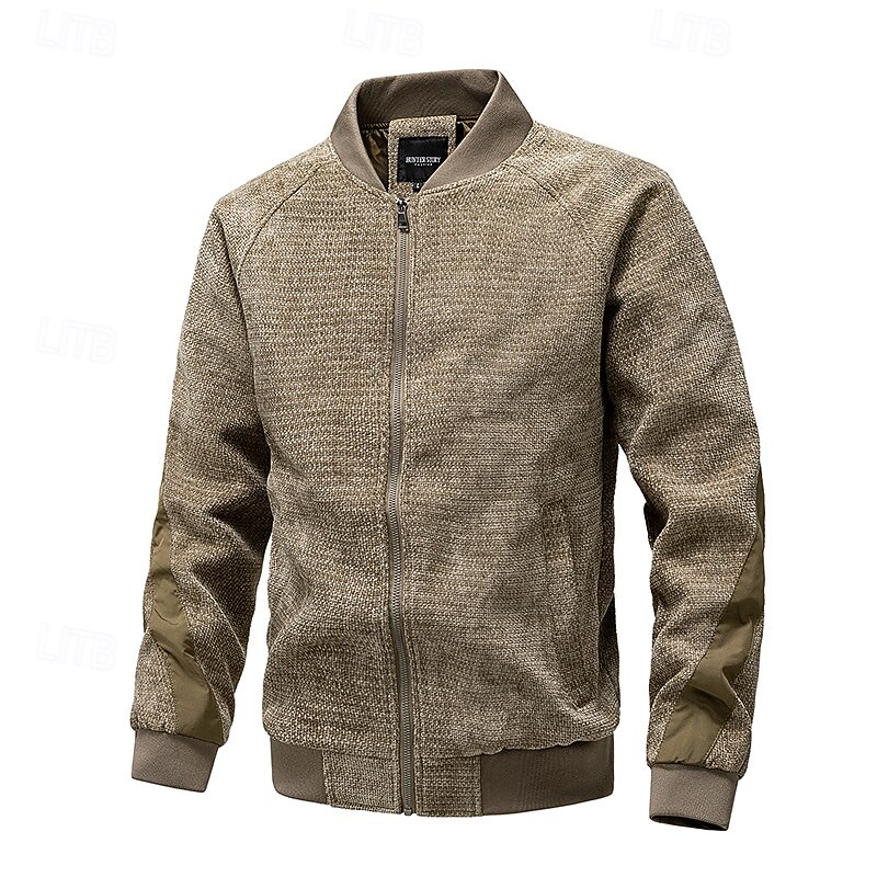Why Choose Men's Lightweight Jacket Bomber Jacket Formal Home Zipper Pocket Fall Winter Solid Color Active Neutral Collarless Regular Black Light Green Brown Khaki Jacket?