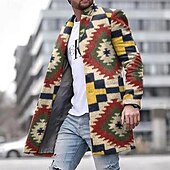 More information about Men's Winter Coat Overcoat Coat Daily Wear Vacation With Pockets Print Front Pocket Fall & Winter Geometry Streetwear Sport Turndown Regular khaki Jacket