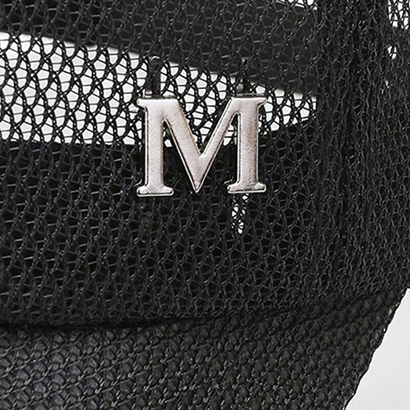 This cap includes a breathable mesh design that enhances air circulation, keeping your head cool even during warm weather. It also features an adjustable strap closure at the back for a customizable fit, suitable for all head sizes, with a subtle "M" logo on the front adding a sleek touch of branding.