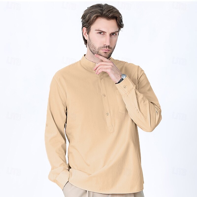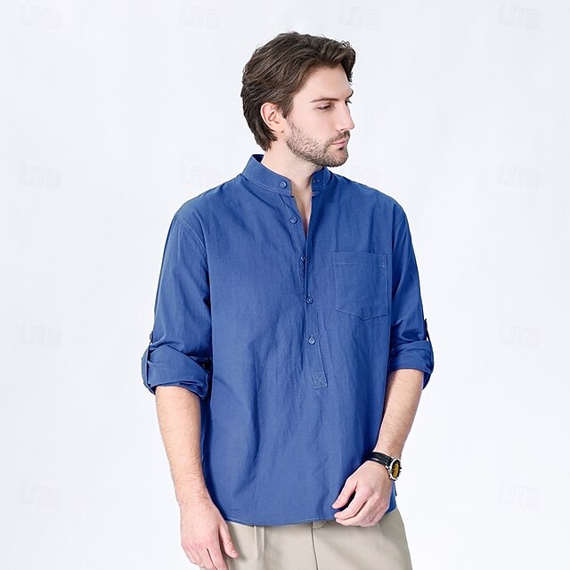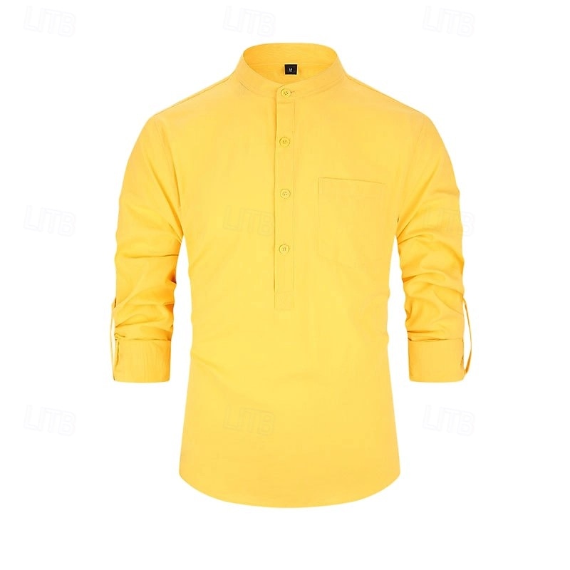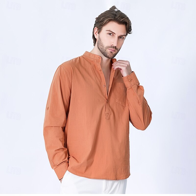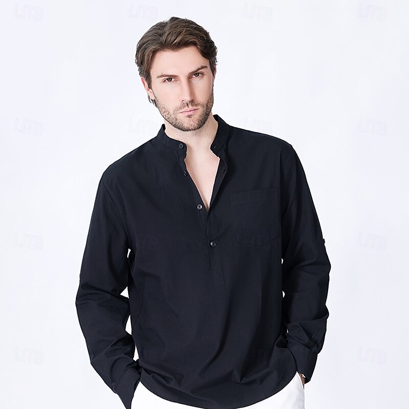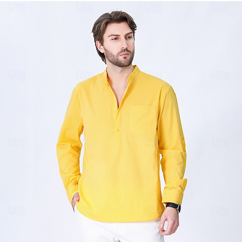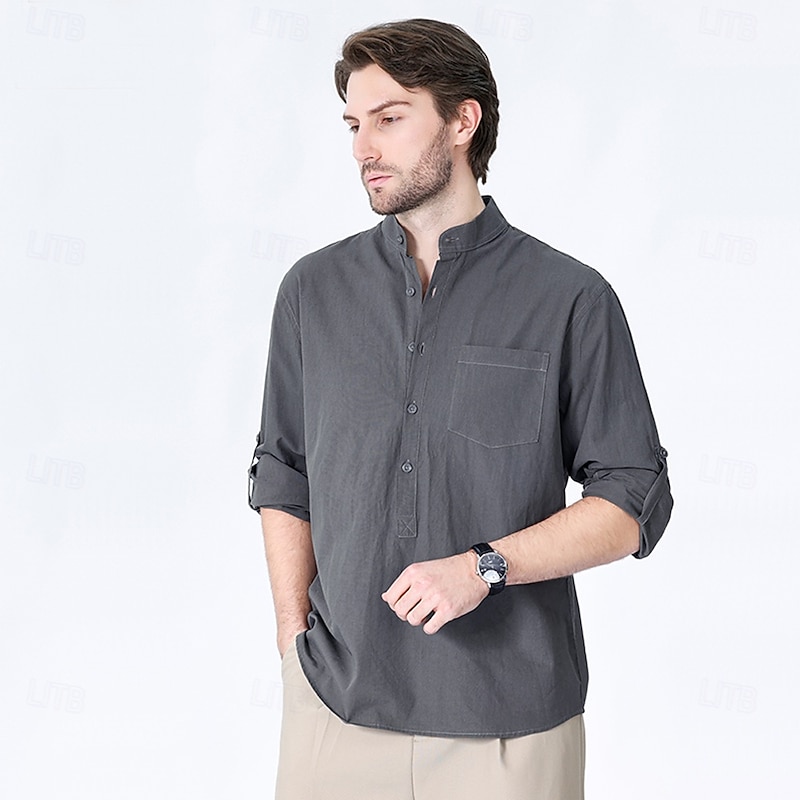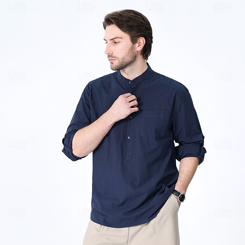 $23.99 - Men's 100% Cotton Shirt Black White Yellow Red Dark Navy Long Sleeve Plain Grandad Collar School Formal Clothing Apparel Minimalist 2025. Shop for cheap Men's Elite Shirts online? Buy at lightinthebox.com on sale today!