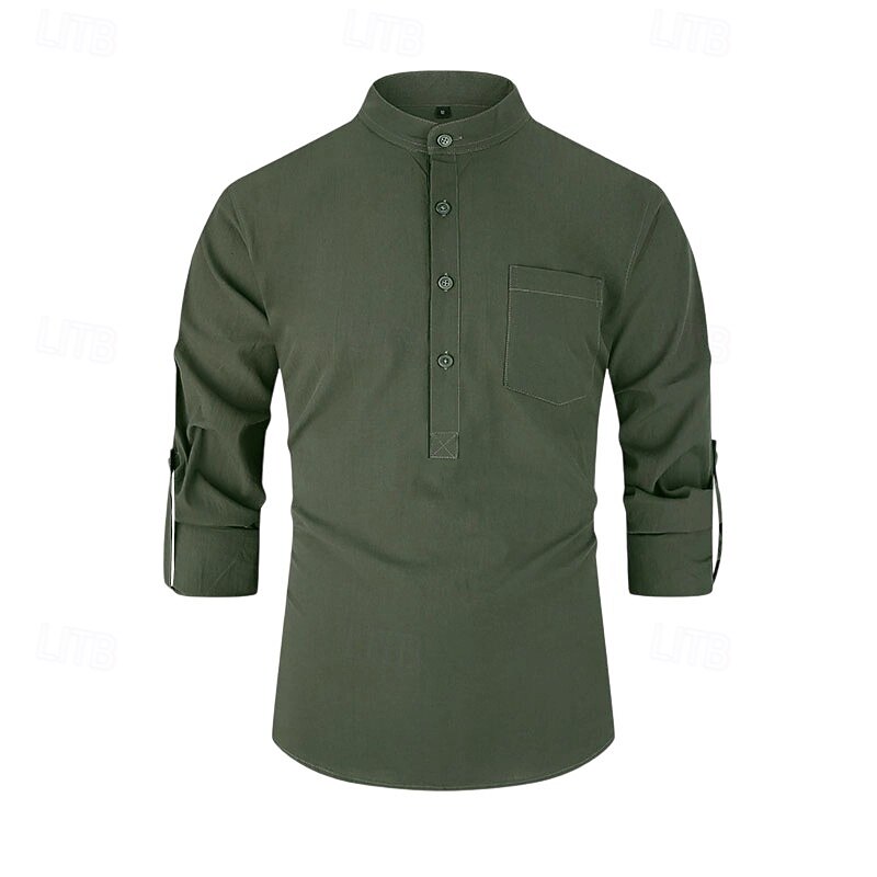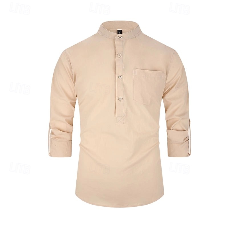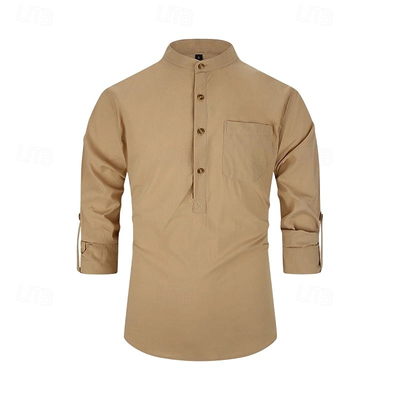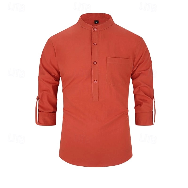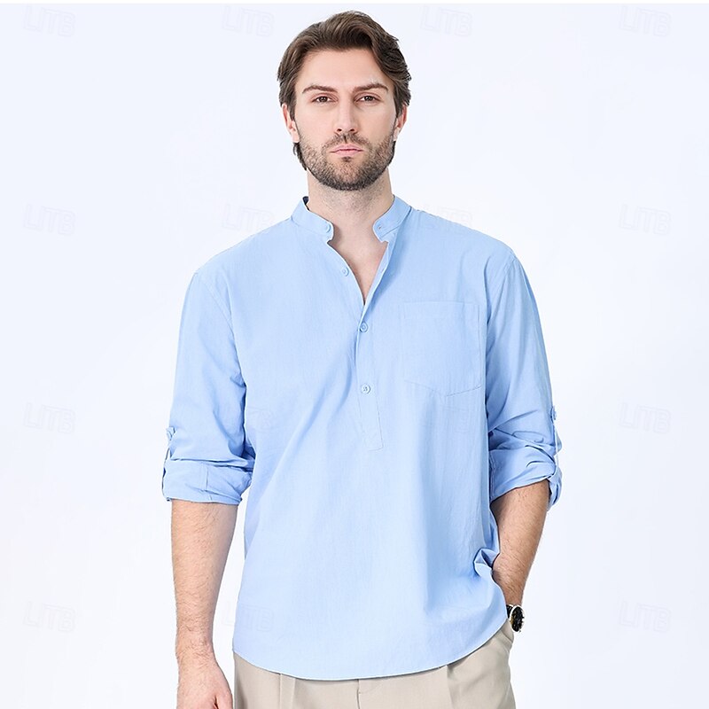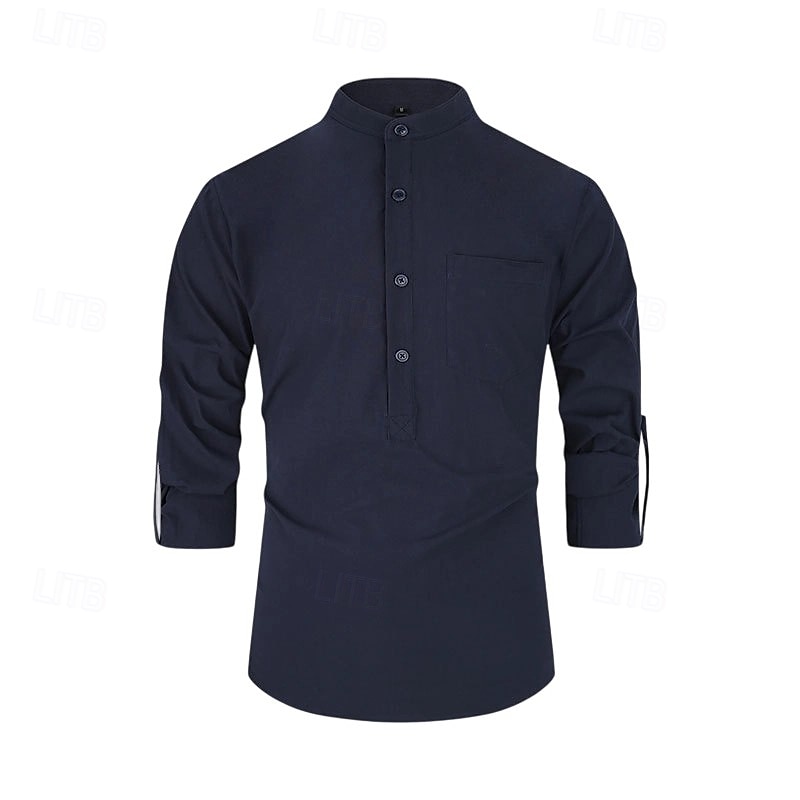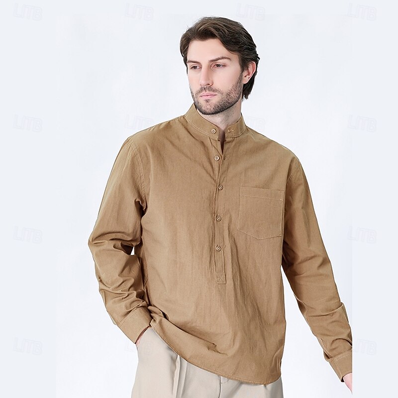 $23.99 - Men's 100% Cotton Shirt Black White Yellow Red Dark Navy Long Sleeve Plain Grandad Collar School Formal Clothing Apparel Minimalist 2025. Shop for cheap Men's Elite Shirts online? Buy at lightinthebox.com on sale today!