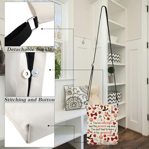 Fabric type: Synthetic LeatherOrigin: ImportedClosure type: ButtonLining: PolyesterHIGH-QUALITY CANVAS MATERIAL: The Movie Inspired small crossbody bag side shoulder for men and women mini canvas crossbody sling bag is made with durable and soft polyester material, a water-resistant bag with a quote and attractive print on the surface, and double-stitched at the seams for a longer lifespan.You've always had the power my dear, You just had to learn it for yourself Crossbody Purses bag flexible storage has one main storage compartment for the credit card or passport holder layer, and one main pouch bag pocket that keeps your personal belongings: wallet, passport, eyeglasses, keys, etc. It easily storage your documentation and valuablesMovies Quotes Crossbody Tote Bag Size: the whole tote is 21.5*17*4.6cm(8.5*6.7*1.8inch). The adjustable strap total length of the shoulder strap is approximately 62-120cm(24.4-47.2 inches). Please allow a measurement deviation of 1-2cm due to manual measurement.SUITABLE OCCASIONS: Movie Inspired Crossbody purse Perfect for hiking, dating, hunting, fishing, mountain climbing, traveling, beach, running, walking, shopping, hiking, gym, outdoor, biking, motorcycle riding, work, office, business, and more. It is very convenient to carry a bag like this on your chest when you go out.There are many ways to carry: 1. single mini/small shoulder bag/side bag backpack(over the shoulder) 2. bum bag belt bag waist pack bag waist pouch bag (hang onto your waist) 3. mini/small messenger satchel bag(hang onto your back). 4. Fanny pack/chest bag/neck purse bag(hang on your neck). Perfect for everyday use. superior materials and excellent craftsmanship ensure long-lasting durability.