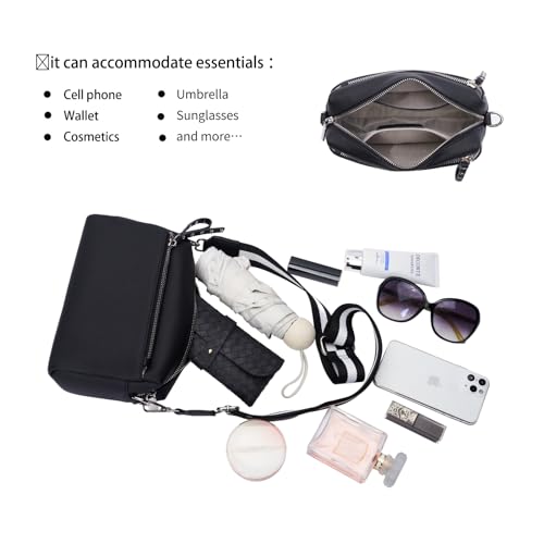 Genuine Leather Crossbody Bags for Women Small Triple Zip Bag Black Shoulder Bags