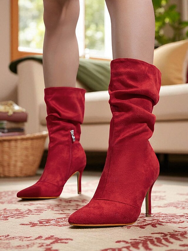 At spsirpa.num.edu.mn, we believe in providing our customers with only the best products. This Women's Red Suede Slouch Mid-Calf Boots - Pointed Toe Stiletto Heel Zip-Up Boots for Fall Street Style and Urban Chic Outfits is designed with attention to detail and high quality craftsmanship that you can see and feel. Whether you're looking for functionality, style, or both, this product delivers exceptional value.
