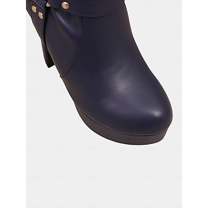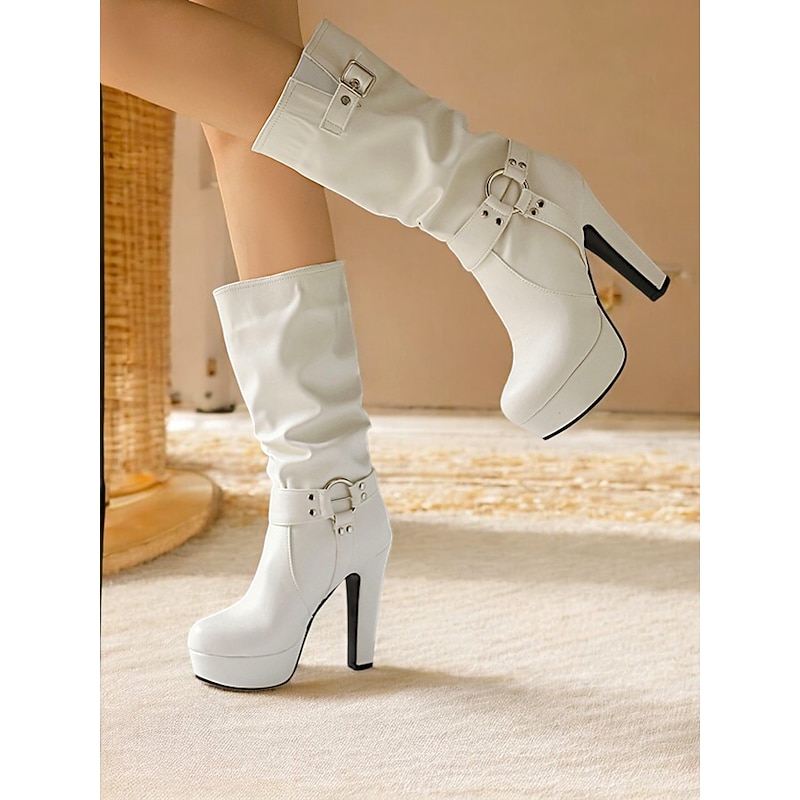 Highlights [Fabric] These Women's Knee-High Platform Boots are crafted from high-quality PU leather, offering durability and comfort throughout all seasons – Spring, Summer, Fall, and Winter. The material ensures a sleek finish that complements the contemporary design. [Fit] Featuring a slouchy mid-calf height and fashionable round toe, these boots provide a comfortable and versatile fit that pairs well with a wide range of outfits. The chunky heel adds stability, making it ideal for all-day wear. [Design Highlights] With eye-catching buckle straps and a decorative zipper closure, these boots boast a bold and modern aesthetic. The platform height of 1.18 inches creates a dramatic yet refined elevation, offering both style and practicality. [Occasions] Perfect for casual outings or formal events, these boots are designed to make a bold fashion statement. Versatile enough for daily wear, they effortlessly enhance your wardrobe with a blend of modern style and timeless appeal. [Size] These boots come in a variety of sizes, ranging from US5.5 (EU35) to US10.5 (EU42), ensuring a perfect fit for every woman. It's recommended to select your usual size for the best fit. Perfect for everyday use. excellent materials and excellent craftsmanship ensure long-lasting durability.