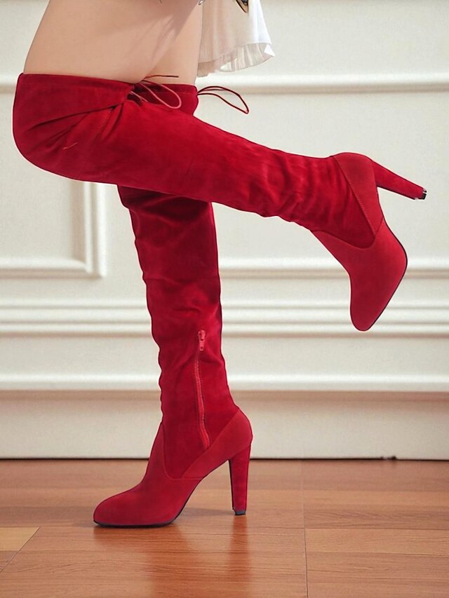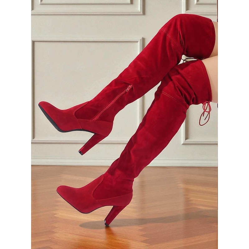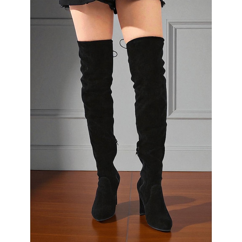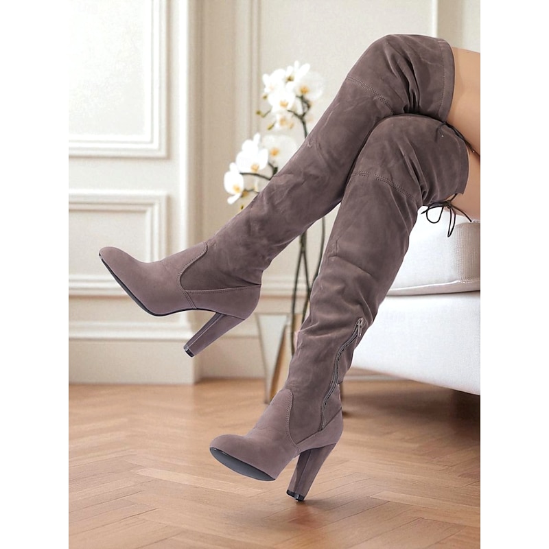More information about Women's Gray Suede Over-the-Knee Boots with High Heels - Chic and trendy Thigh-High Booties for Fashion-Forward Outings and Evening Wear