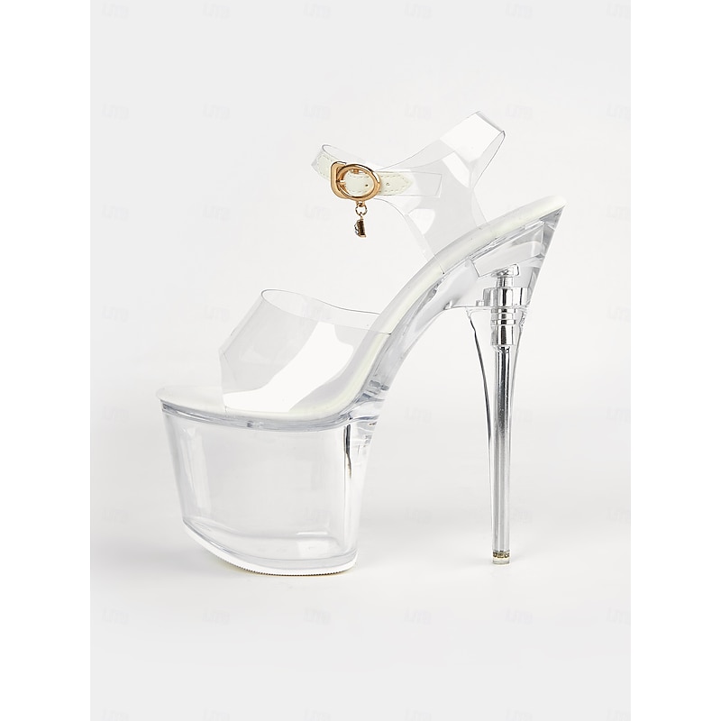 trending ! Clear Platform High Heel Sandals with Transparent Ankle Strap - Women's Sexy Pole Dance Shoes for Performances and Parties