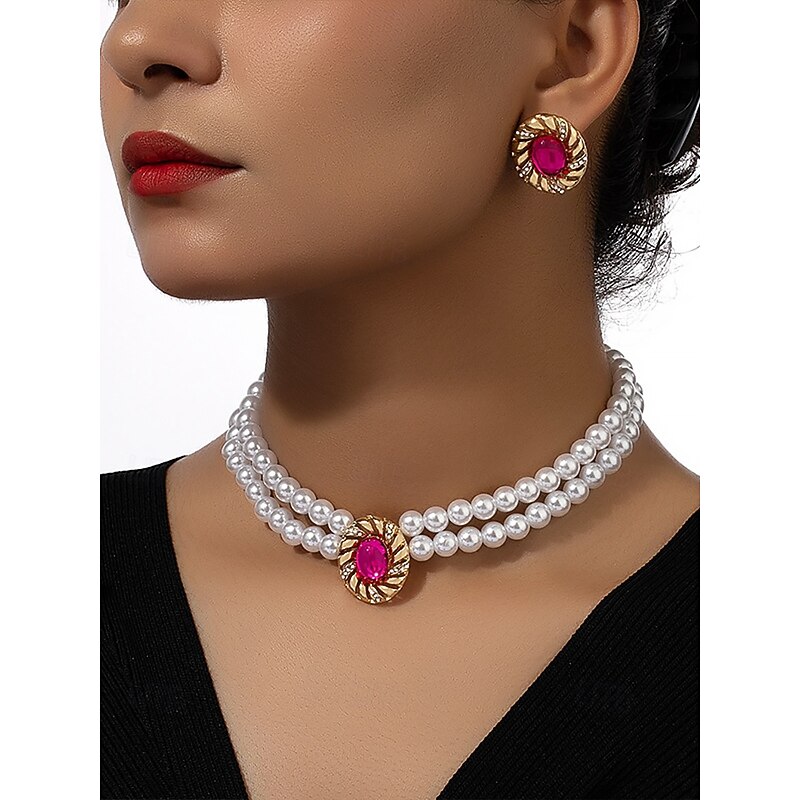 $14.99 - Women's Vintage Pearl Choker Necklace and Earrings Set – Elegant Double Strand Beaded Jewelry with Gold Oval Accents for Ladies, Ideal for Weddings, Parties and Formal Occasions 2025. Shop for cheap Women's Necklace online? Buy at lightinthebox.com on sale today!