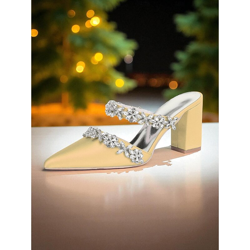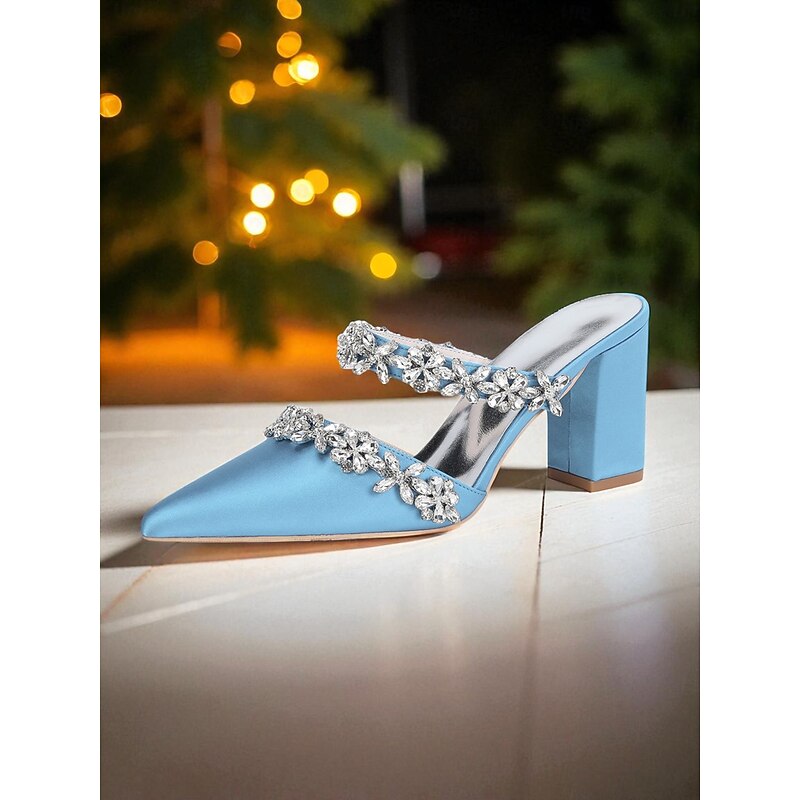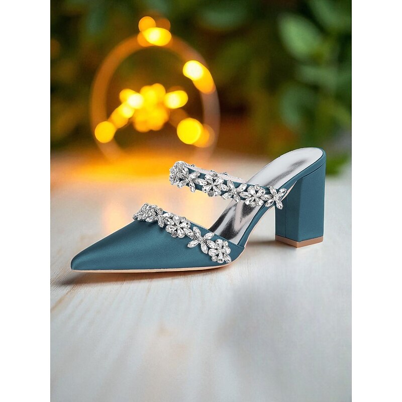 This Women's Black Satin Block Heel Mules with Rhinestone Floral Straps - Elegant Pointed Toe Shoes for Formal Events and Nightlife Parties combines elegant design with practical functionality. Every detail has been carefully considered to ensure you get the premier possible experience. The finest construction means this product will serve you well for years to come.