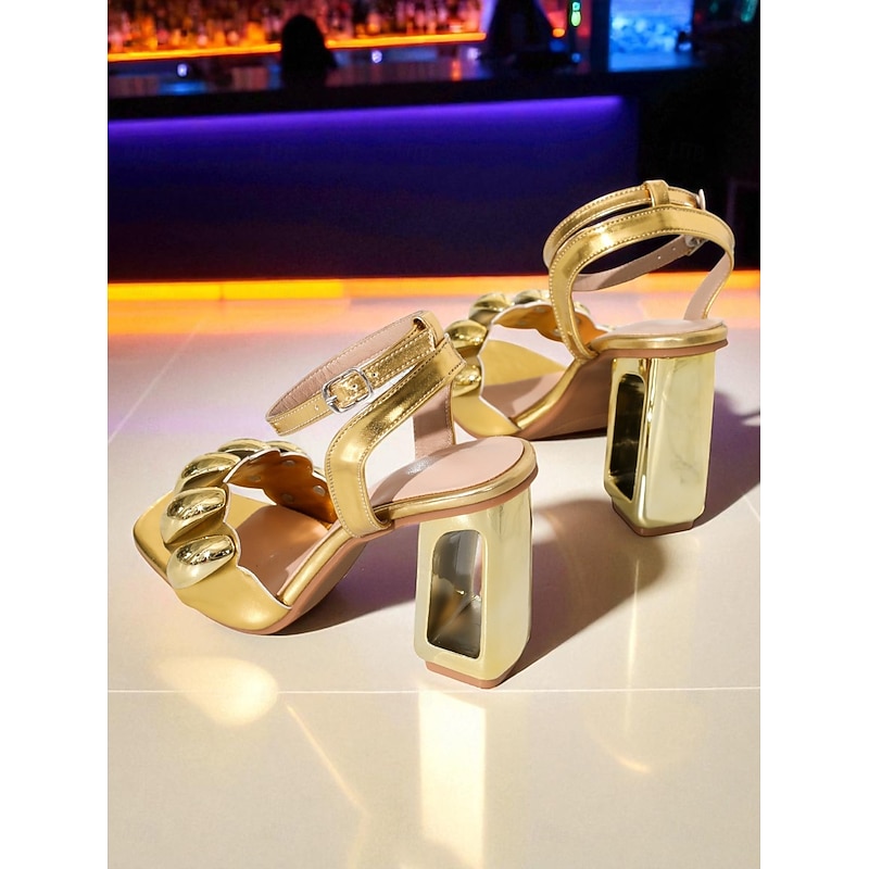 This Women's Gold Metallic Ankle Strap High Heel Sandals with Chunky Block Heel - contemporary Party Shoes for Nightlife and Clubbing combines elegant design with practical functionality. Every detail has been carefully considered to ensure you get the best possible experience. The superior construction means this product will serve you well for years to come.