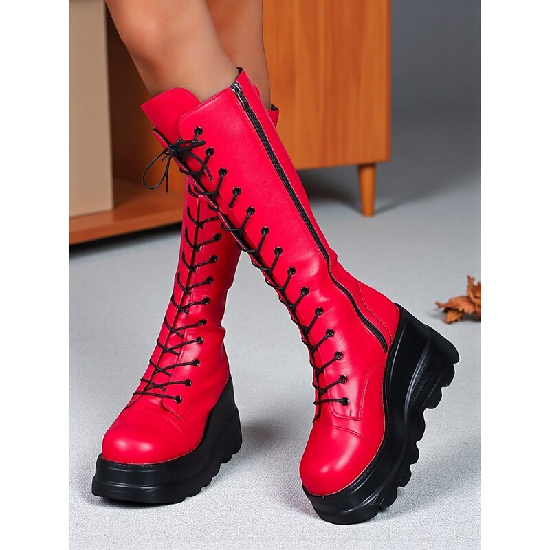 Why Choose Women's Red Platform Knee High Lace-Up Boots with Chunky Soles - Bold Nightlife Party and Clubwear Shoes?