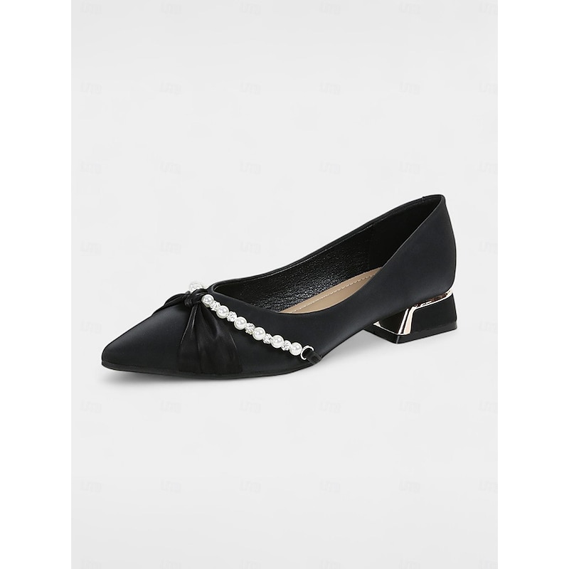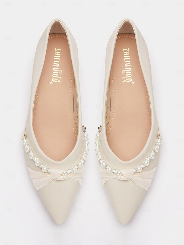 trending ! Women's Pearl Embellished Low Heel Flats - Elegant Pointed Toe Slip-On Shoes for Weddings and Formal Events