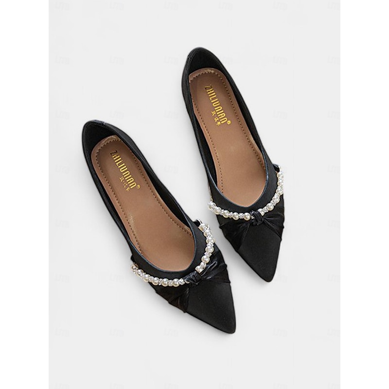 Highlights [Fabric] Crafted from high-quality PU for a refined and polished look, these Women's Pearl Embellished Low Heel Flats feature a synthetic leather lining for added comfort. The durable construction ensures a comfortable fit across all-day wear. [Silhouette] Designed in a classic slip-on style with a pointed toe, these flats epitomize timeless elegance and latest sophistication, making them apt for both chic and casual ensembles. [Design Highlights] The standout feature is a bejeweled band over the toe area, adorned with imitation pearls and sparkling rhinestones, offering a luxurious touch. An elegant ivory bow detail complements the pearls and rhinestones beautifully, enhancing the chic design. [Occasions] Perfectly suited for weddings, formal events, parties, and even casual gatherings. These flats provide the ideal balance of style and comfort, allowing you to transition seamlessly across occasions with flair. [Size Notice] Available in a range of sizes from US5.5 to US10.5, these shoes are designed to fit true to size. Select your usual size for the best fit.