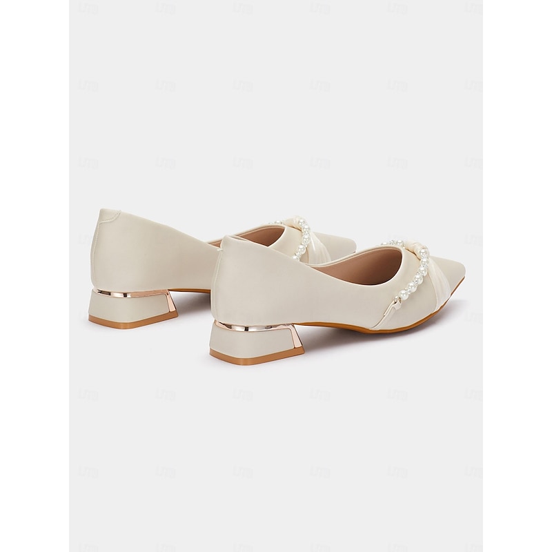 More information about Women's Pearl Embellished Low Heel Flats - Elegant Pointed Toe Slip-On Shoes for Weddings and Formal Events