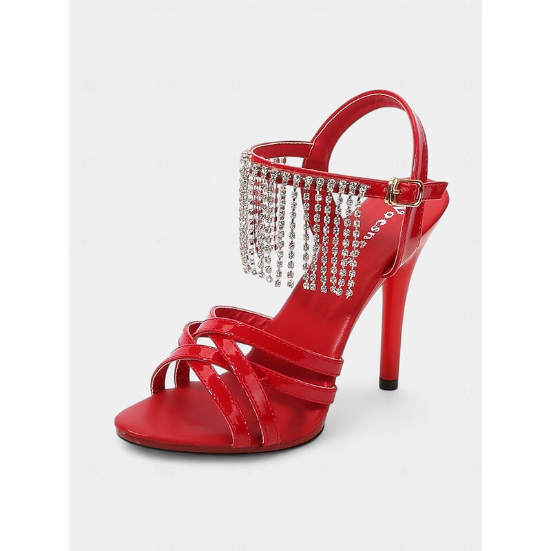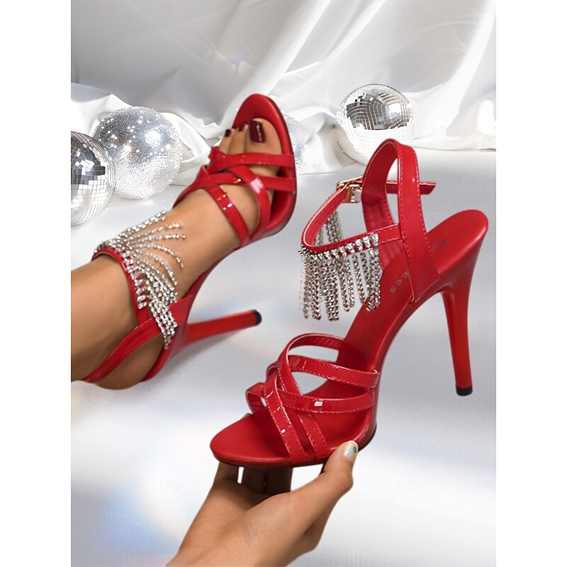 Why Choose Women's Red Patent Leather Stiletto Sandals with Rhinestone Fringe for Formal Occasions, Cocktail Parties, and Celebrations?
