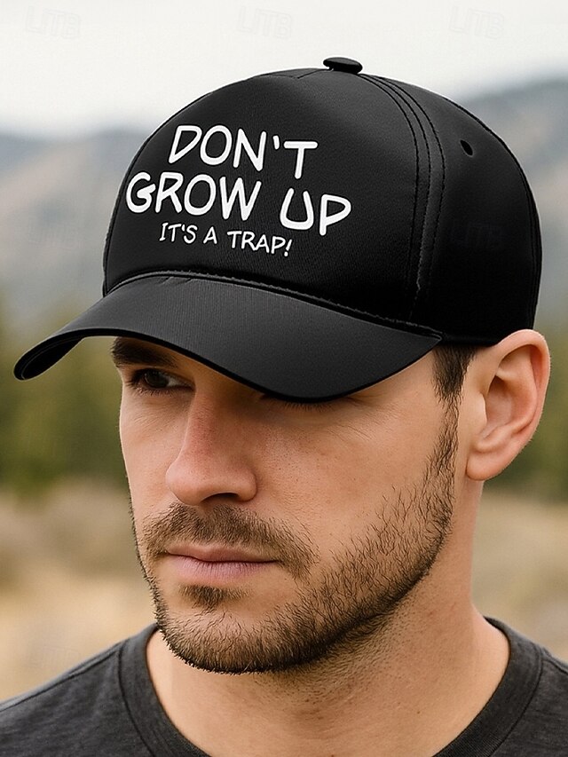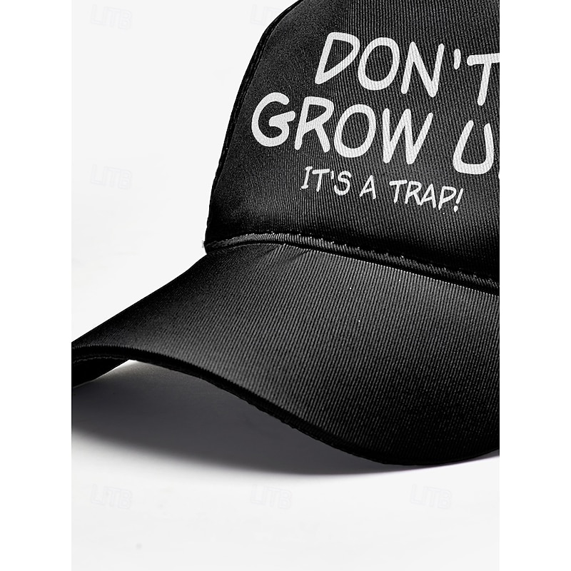 $14.99 - Men's Funny Embroidered Baseball Cap – “Don't Grow Up It's a Trap!” Adjustable Dad Hat for Adults and Teens, Casual Outdoor Streetwear 2025. Shop for cheap Men's Hats online? Buy at lightinthebox.com on sale today!
