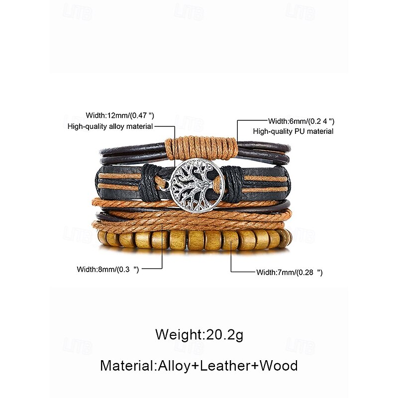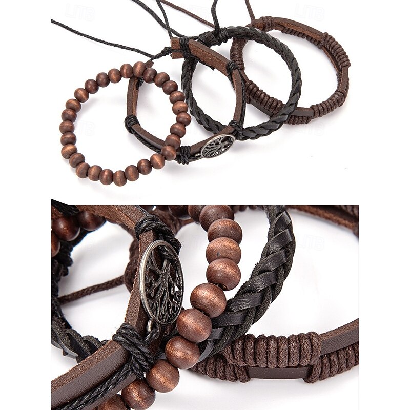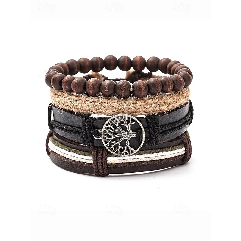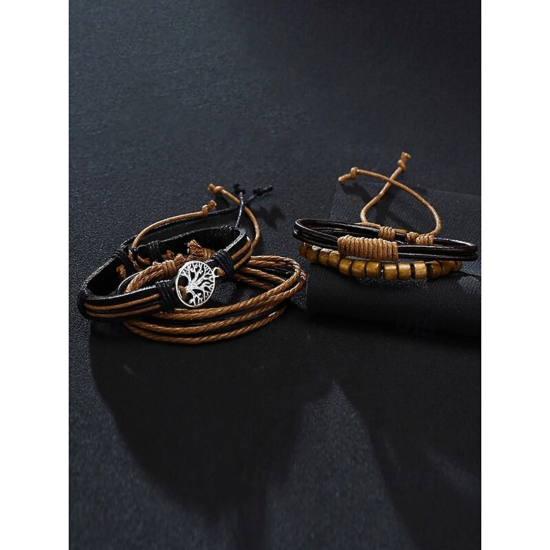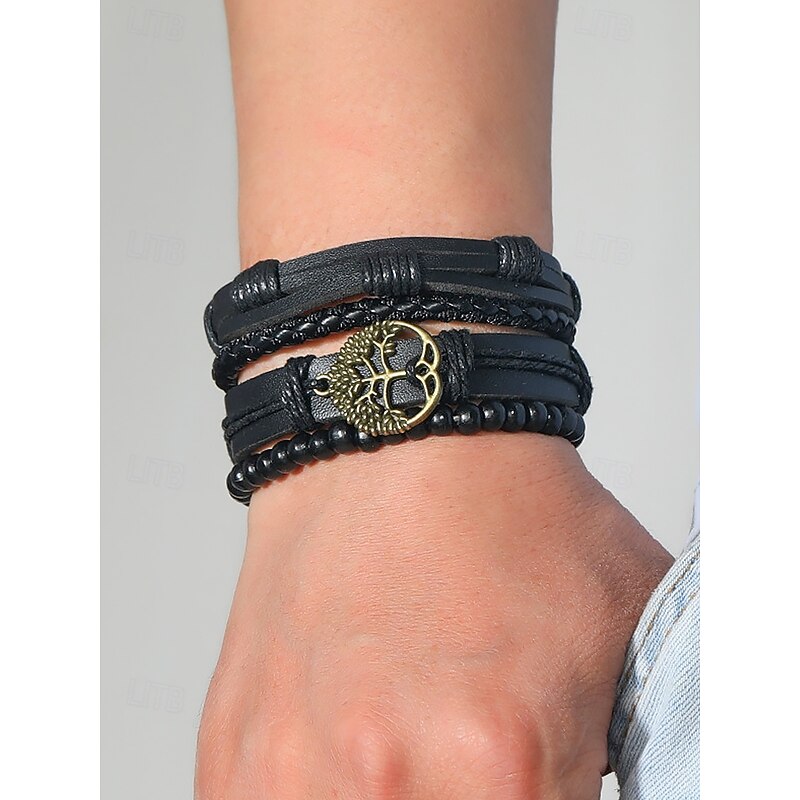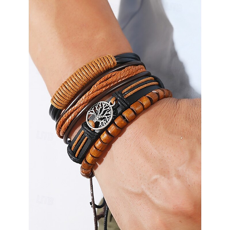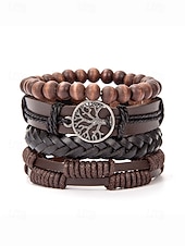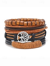 $9.99 - Men's Genuine Leather Multi-Layer Bracelet Set – Boho Beaded Tree of Life Cuff Wristband for Casual, Party and Travel 2025. Shop for cheap Men's Jewelry online? Buy at lightinthebox.com on sale today!
