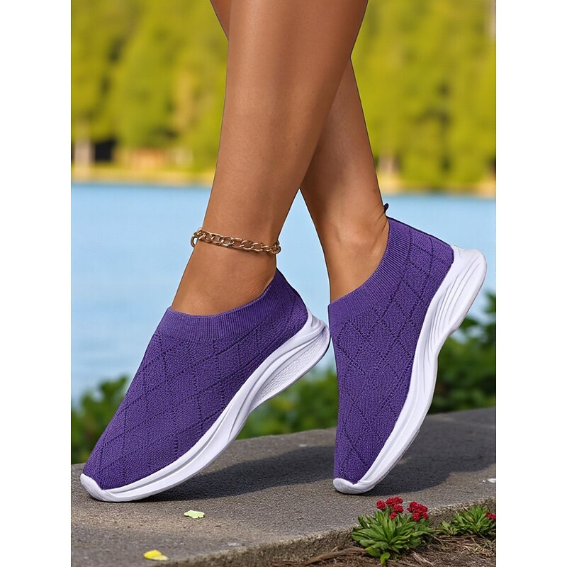 Why Choose Women's Purple Flyknit Slip-On Sneakers – Lightweight Breathable Walking Shoes for Outdoor Sports, Travel and Gym Training?