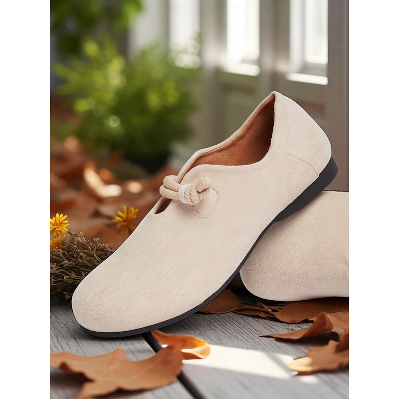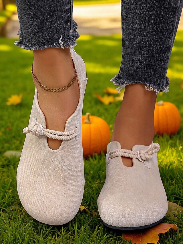 trending ! Women's Wide Toe Beige Rope Loafers – velvety Slip-On Vintage Style Shoes for Walking, Errands and Weekend Outfits