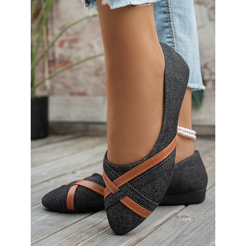 Why Choose Women's Dark Blue Denim and Faux Leather Crisscross Flats – Vintage-Inspired Casual Ballerina Shoes for Daily Wear & Weekend Styling?