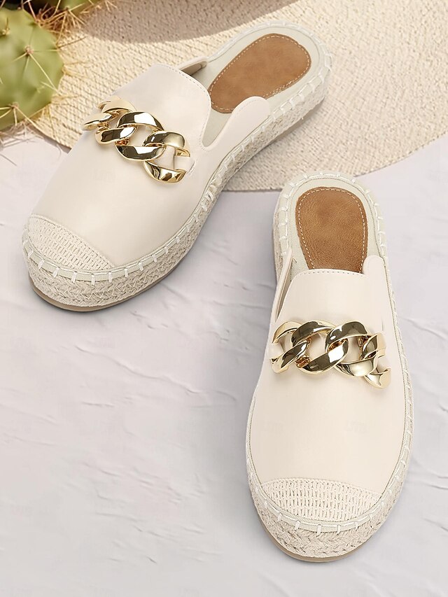 Women's Espadrille Mules with Gold Chain Detail – Casual Slip-On Flats for Summer Beach and Daily Wear