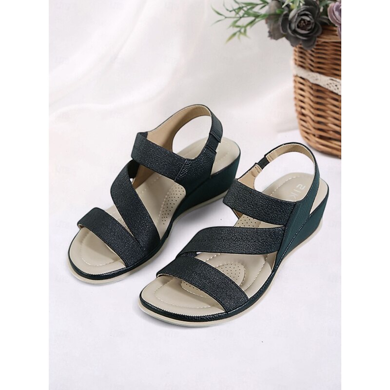 Why Choose Women's Green Elastic Strap Wedge Sandals with Cushioned Sole - silky Summer Shoes for Casual Wear and Travel?