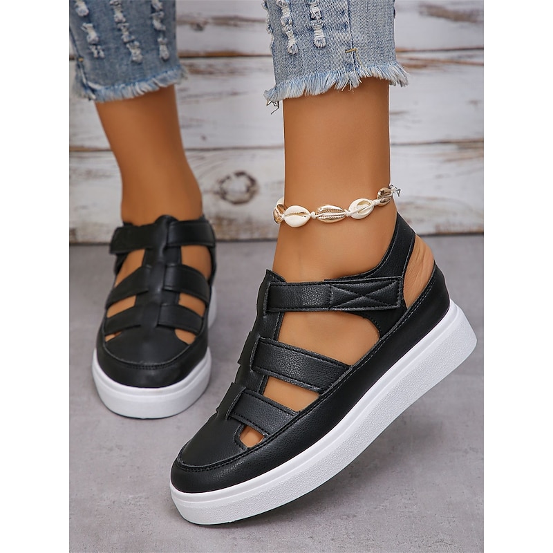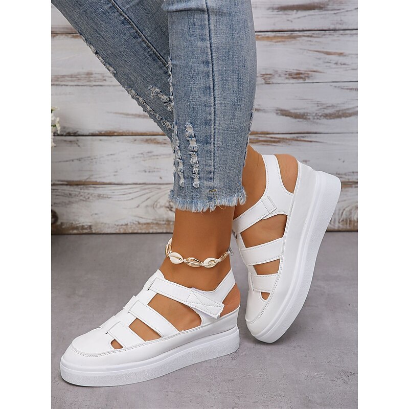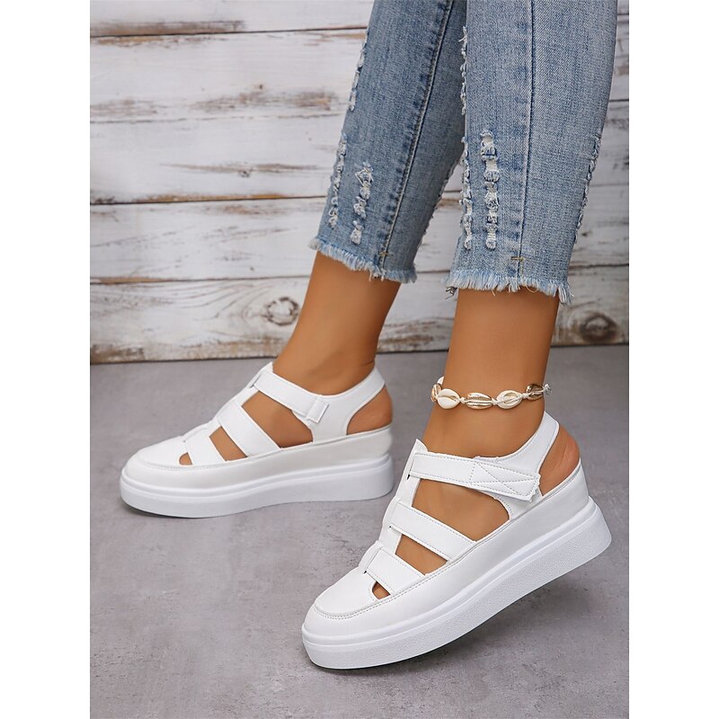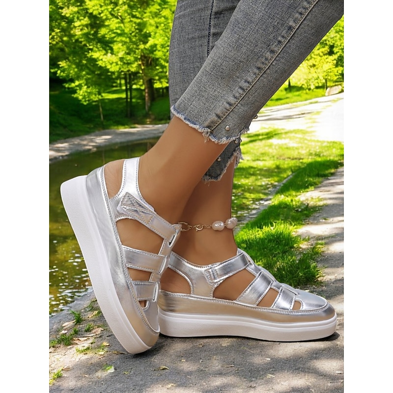 : These sandals feature a classic gladiator style combined with a contemporary wedge heel. The round toe design adds an element of minimalism, making them a versatile choice for various occasions.