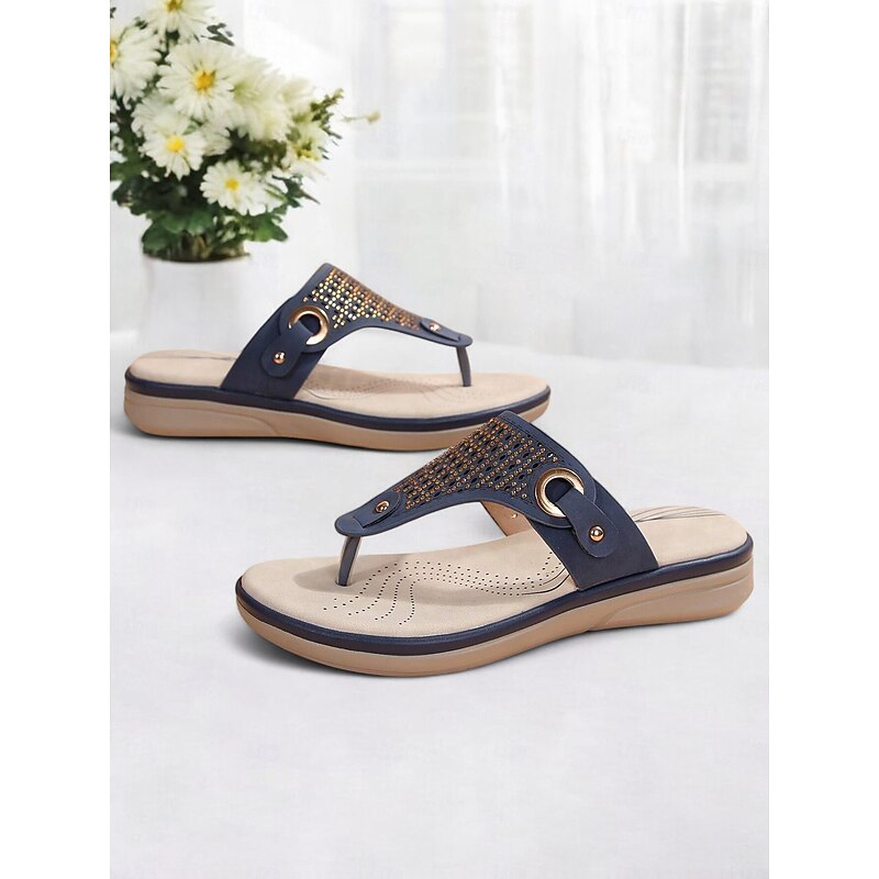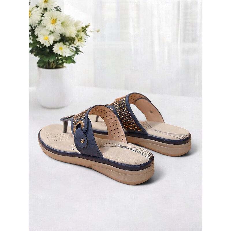 More information about Women's Blue Rhinestone-Embellished Flip-Flop Sandals – sophisticated and snug Summer Footwear for Casual and Beach Wear