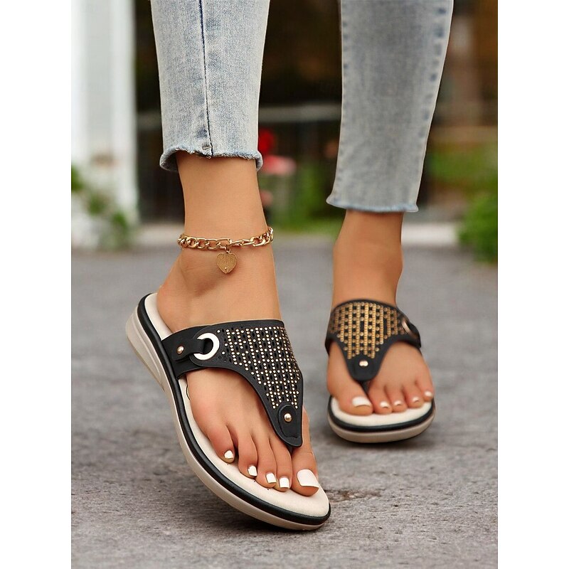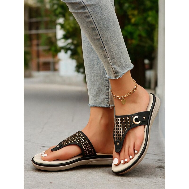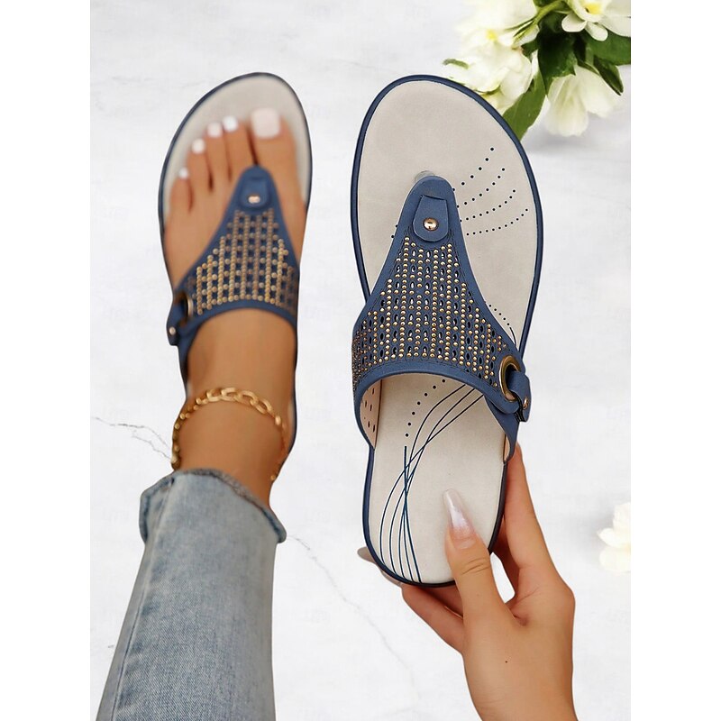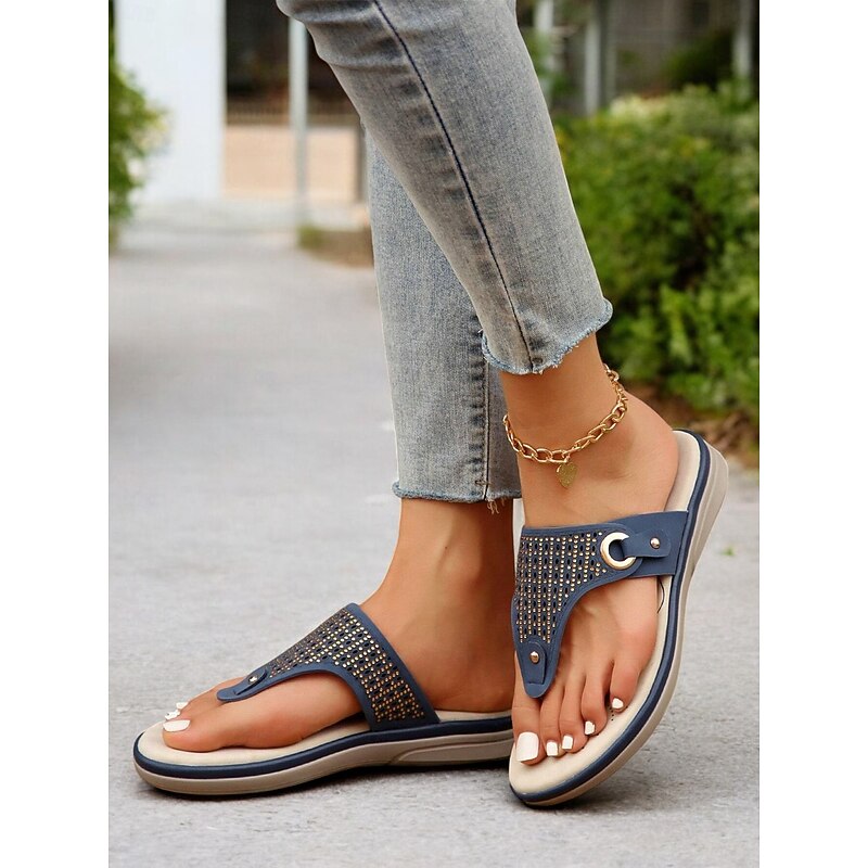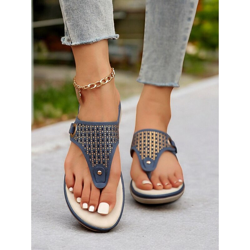 trending ! Women's Blue Rhinestone-Embellished Flip-Flop Sandals – contemporary and relaxing Summer Footwear for Casual and Beach Wear