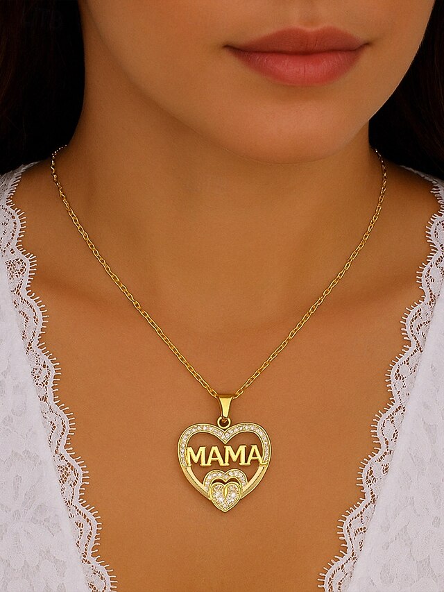 $7.99 - Gold Heart "MAMA" Pendant Necklace with Rhinestone Accents – Elegant Mother's Day Jewelry Gift for Women, Moms and Grandmothers 2025. Shop for cheap Women's Necklace online? Buy at lightinthebox.com on sale today!