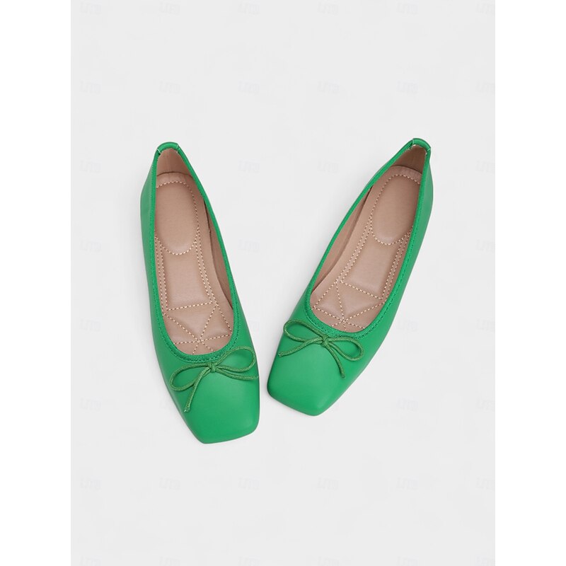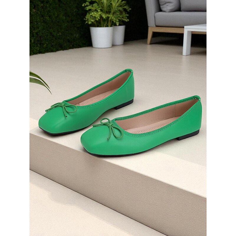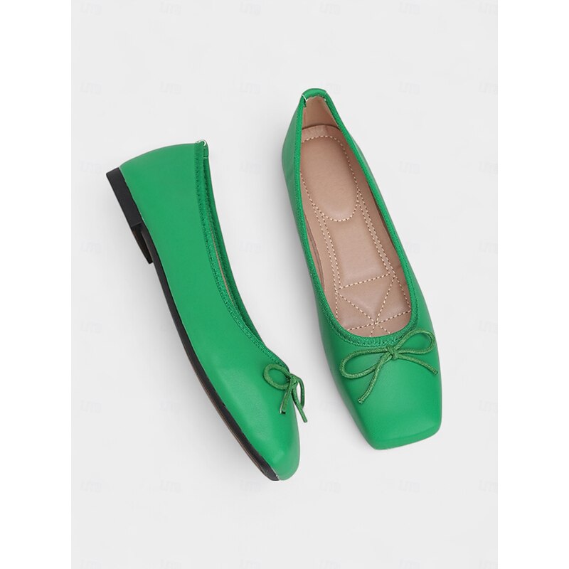Why Choose Women's Green Square Toe Ballet Flats – Faux Leather Bow Slip-On Shoes for Casual, Office, and Weekend Wear?