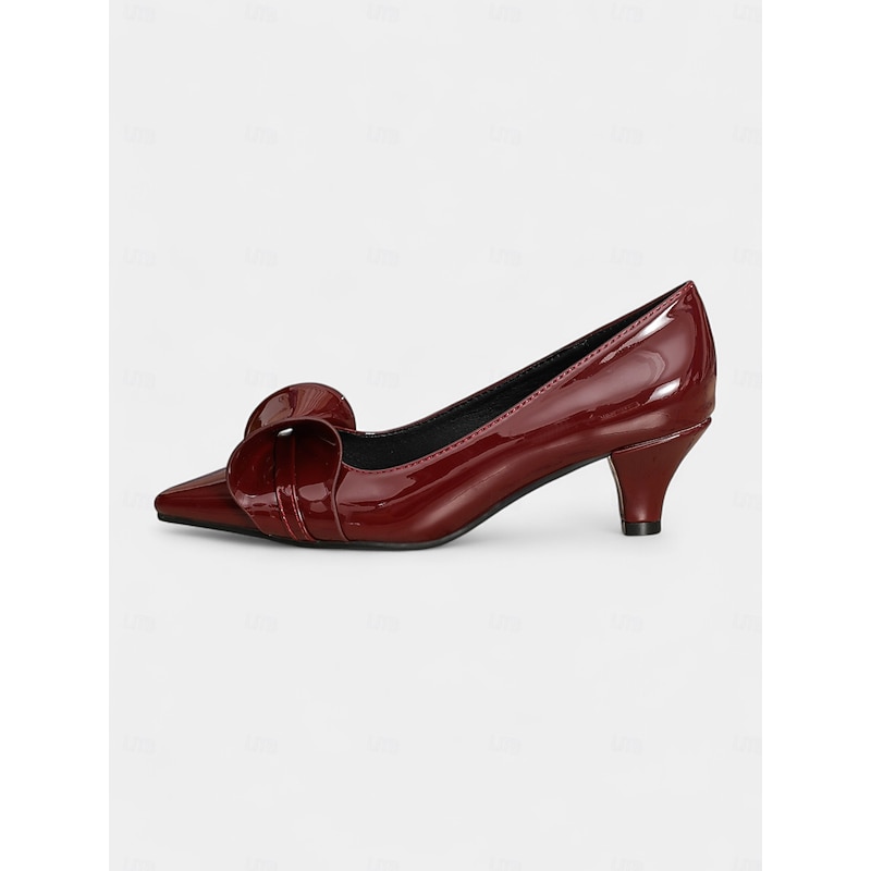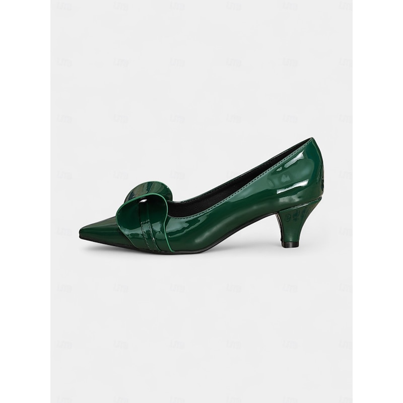 trending ! Women's Dark Green Bow Pointed Toe Heels – Patent Leather Mid Heels, Vintage-Inspired Style for Work, Parties and Dressy Occasions