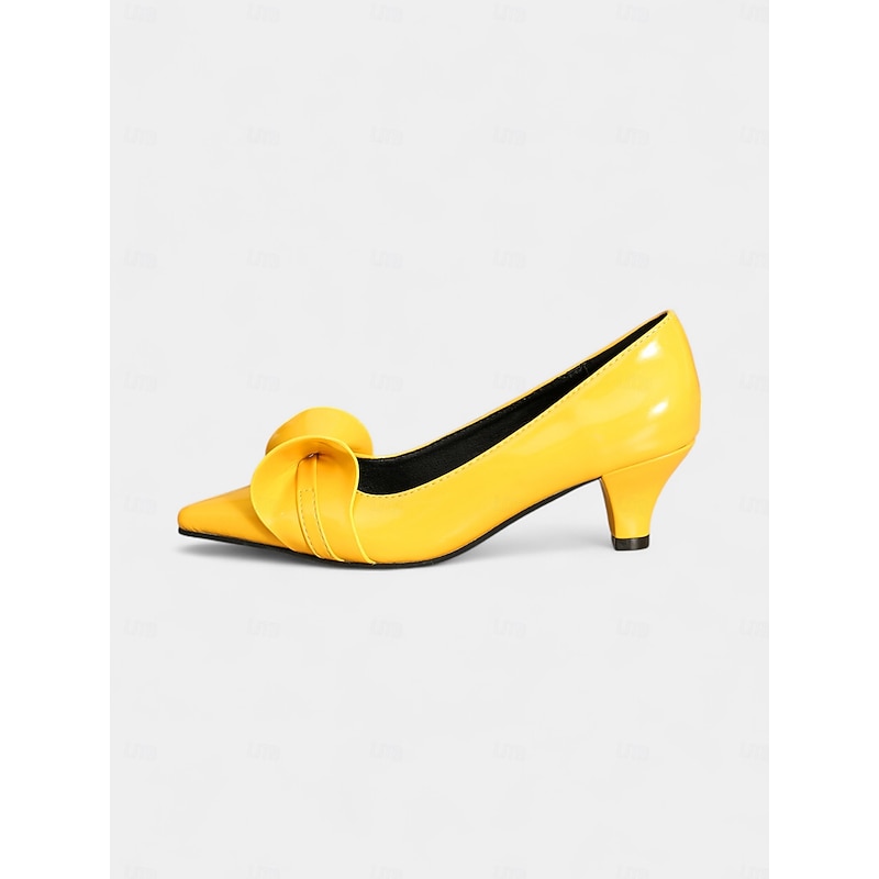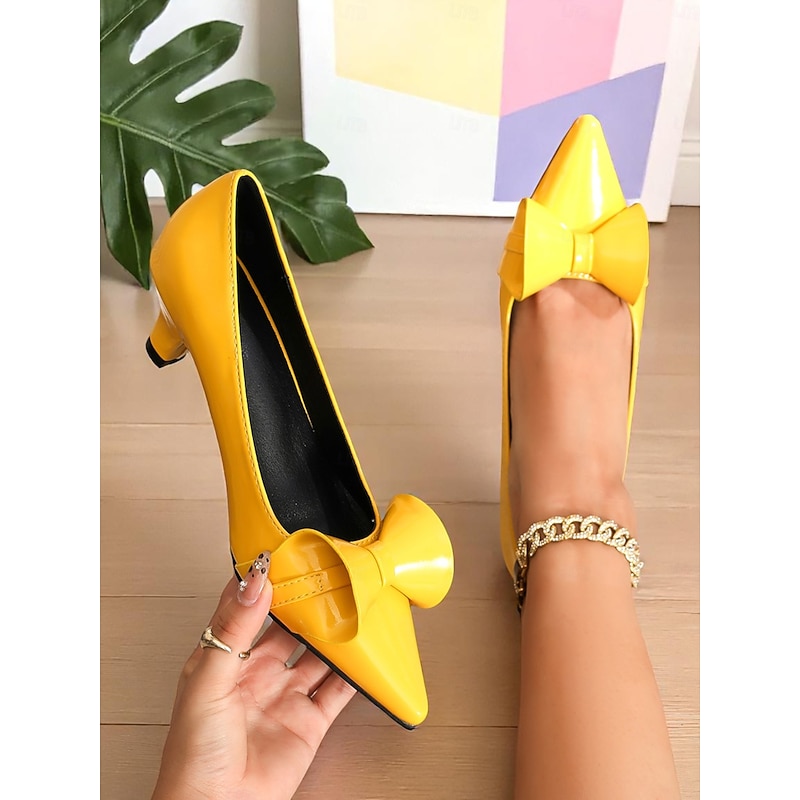Highlights - Features faux leather and patent leather for a fashionable look - Adorned with a charming bowknot embellishment - Designed with a trendy chunky heel for added height and comfort - Pointed toe shape for a chic and sophisticated style - long-lasting rubber outsole for lasting quality and traction