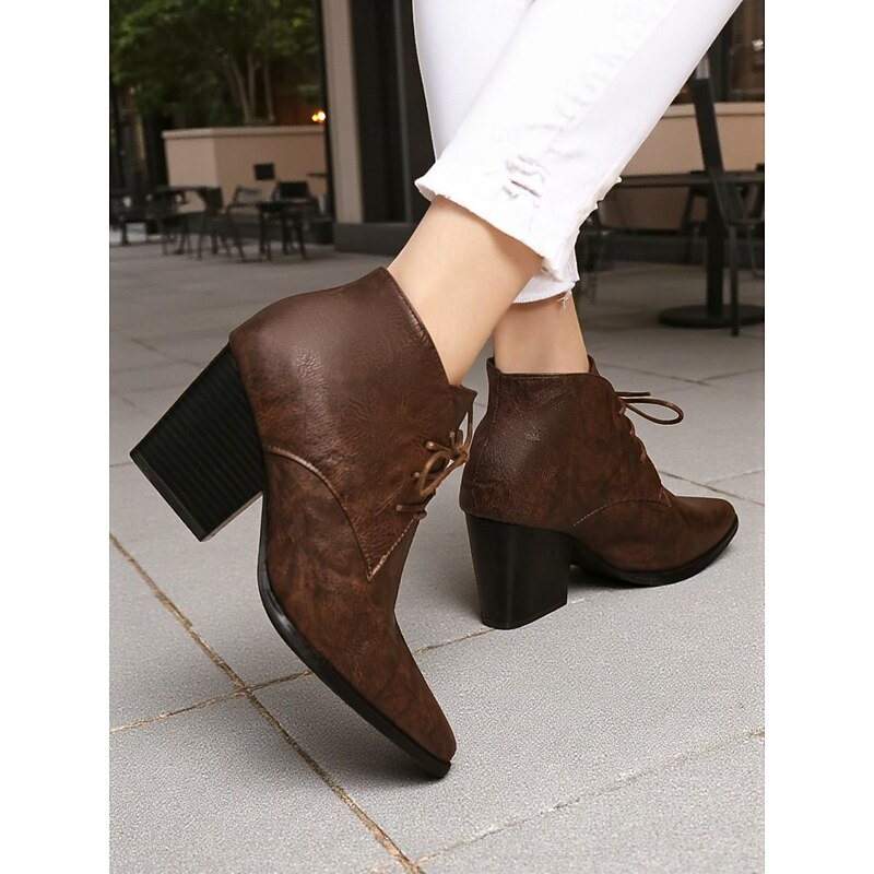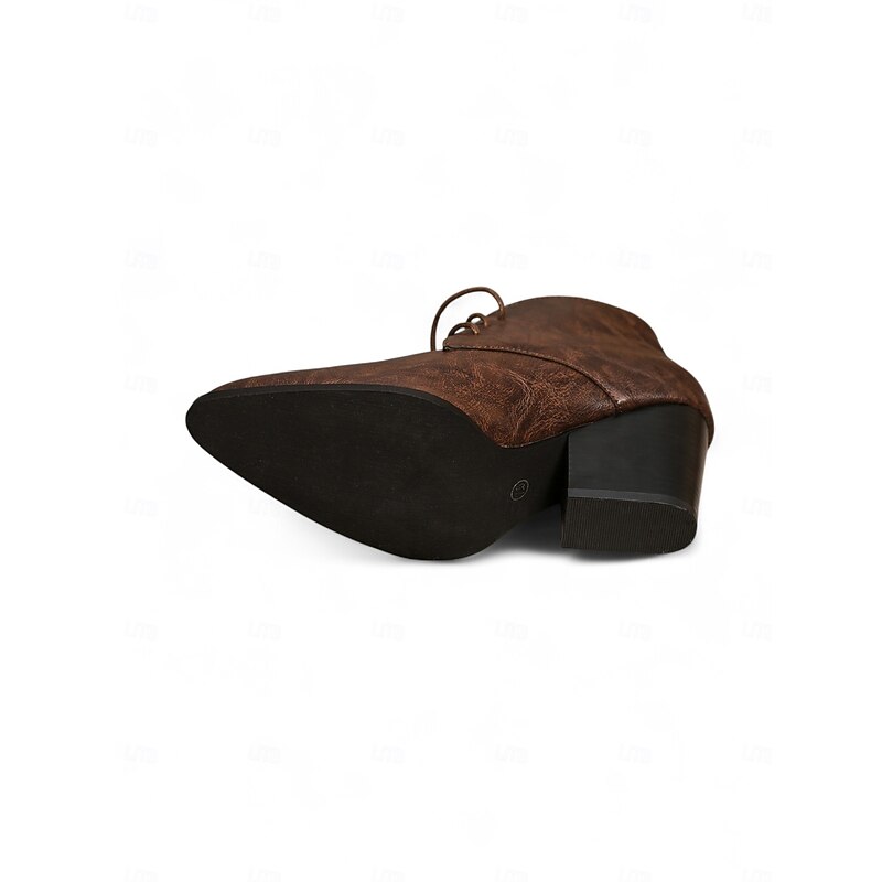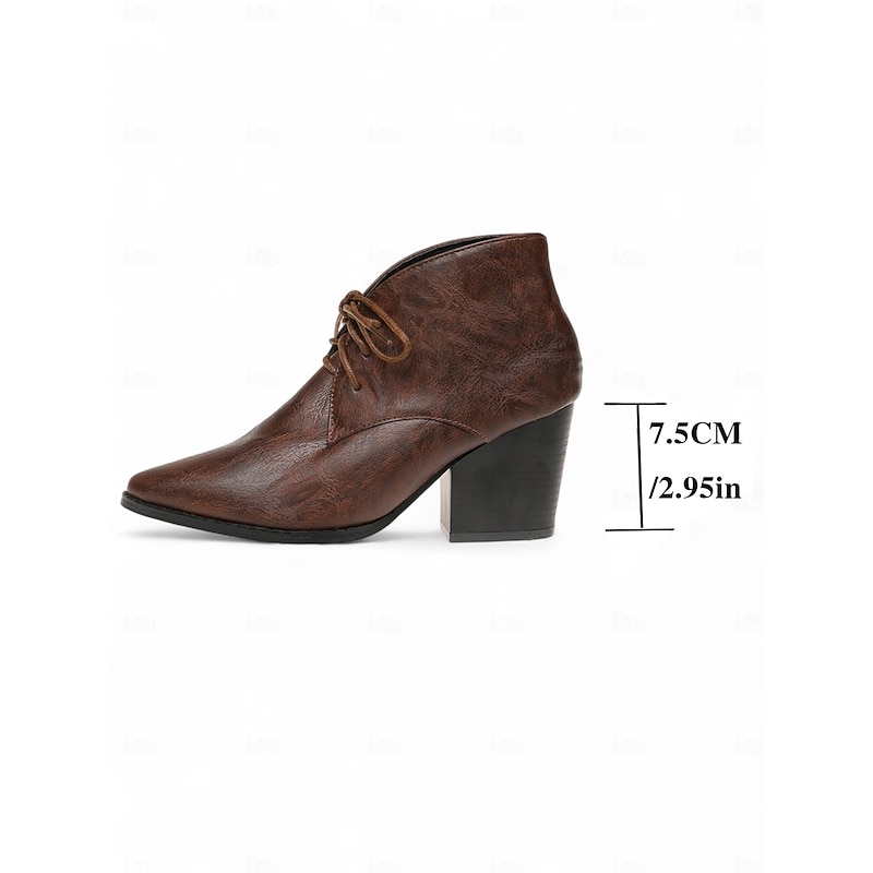 More information about Women's Retro Lace-Up Pointed Toe Ankle Boots - Faux Leather Block Heel Short Boots for Fall,Street Style & Daily Outfits