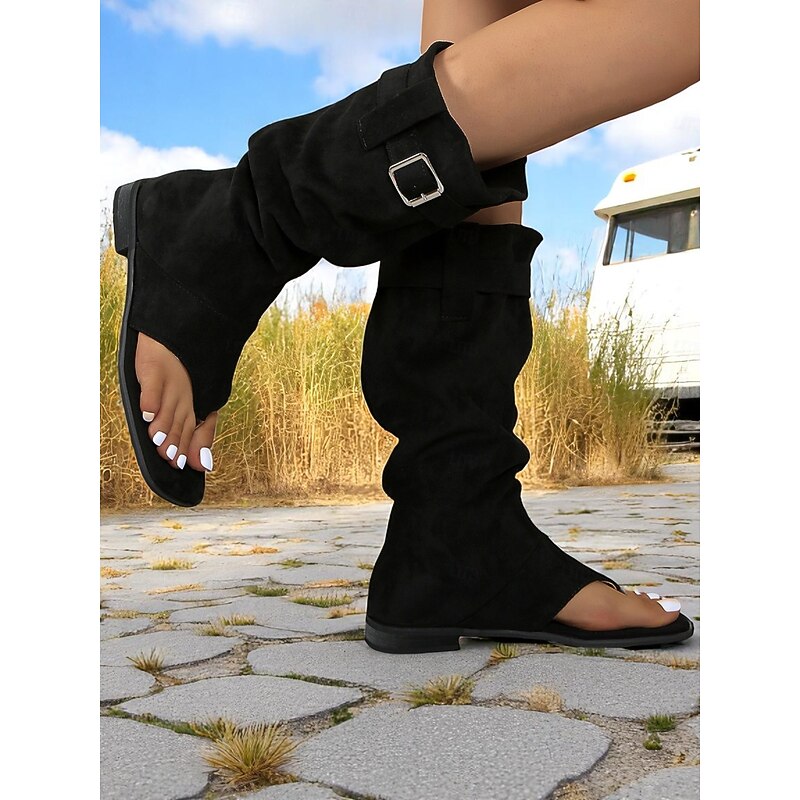trending ! Women's Brown Suede Gladiator Toe Ring Boots – Flat Sole, Adjustable Buckle, Boho Style for Summer Road Trips