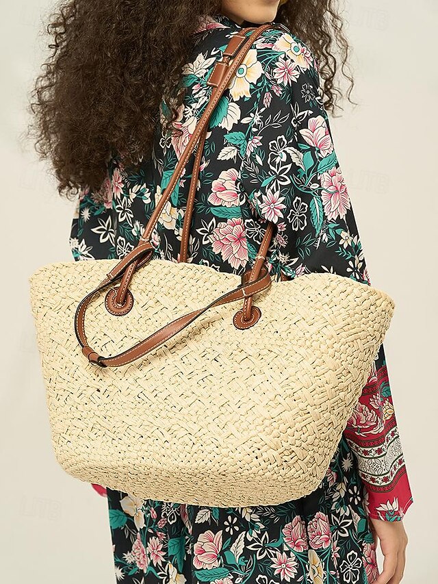 Why Choose Women's Boho Chic Large Straw Tote Bag with Leather Straps, exceptional for Beach Outings and Casual Summer Days?