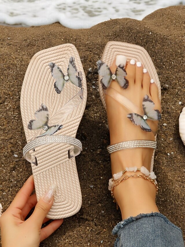 trending ! Women's transparent Butterfly-Embellished Sandals with Rhinestone Detail – Chic and Elegant Summer Footwear for Casual Outings and Beachwear