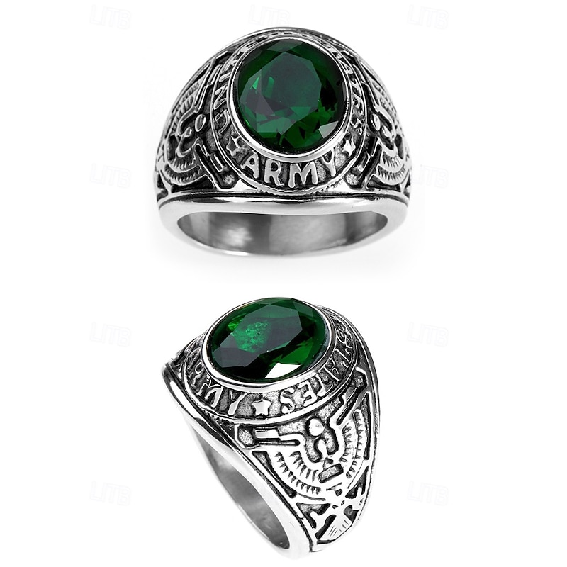 $11.99 - Men's Vintage Army Ring with Emerald Green Gemstone – Antique Silver Military Style Statement Ring for Veterans and Collectors 2025. Shop for cheap Men's Jewelry online? Buy at lightinthebox.com on sale today!